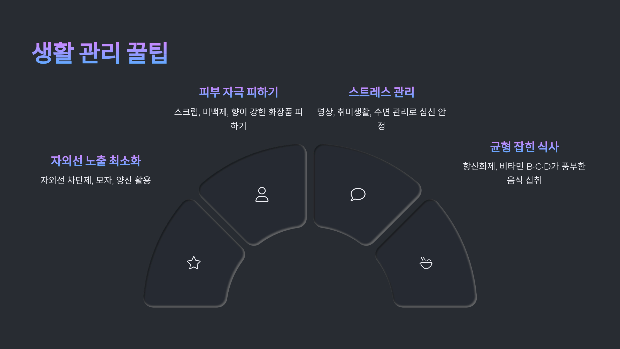 자극을 줄이고 멜라닌세포의 건강을 지켜주는 생활 관리 팁들을 소개할게요.