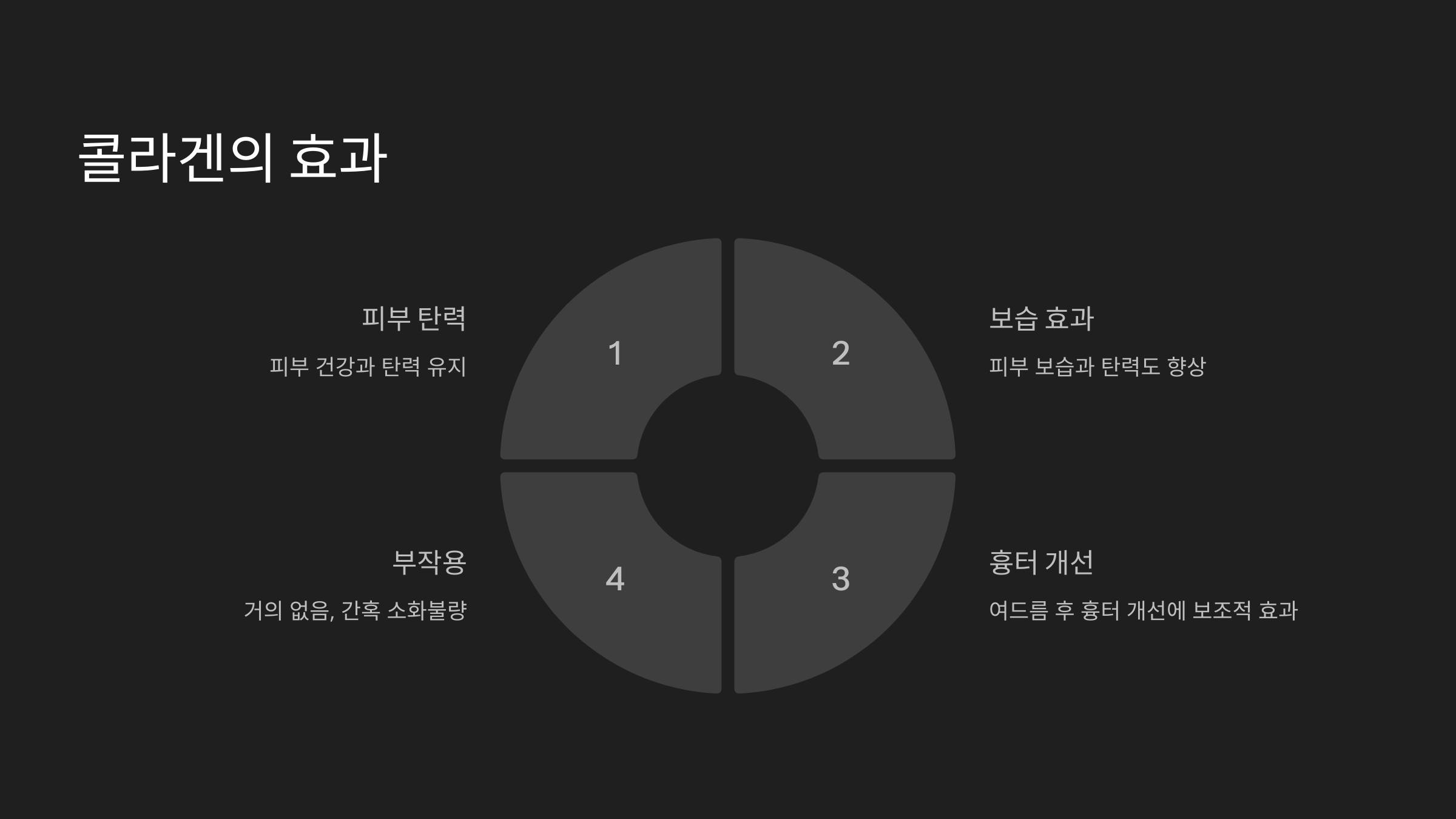 여러 임상 연구에서도 콜라겐 보충제를 꾸준히 섭취할 경우 피부 보습과 탄력도가 눈에 띄게 향상된다고 보고돼 있어요.