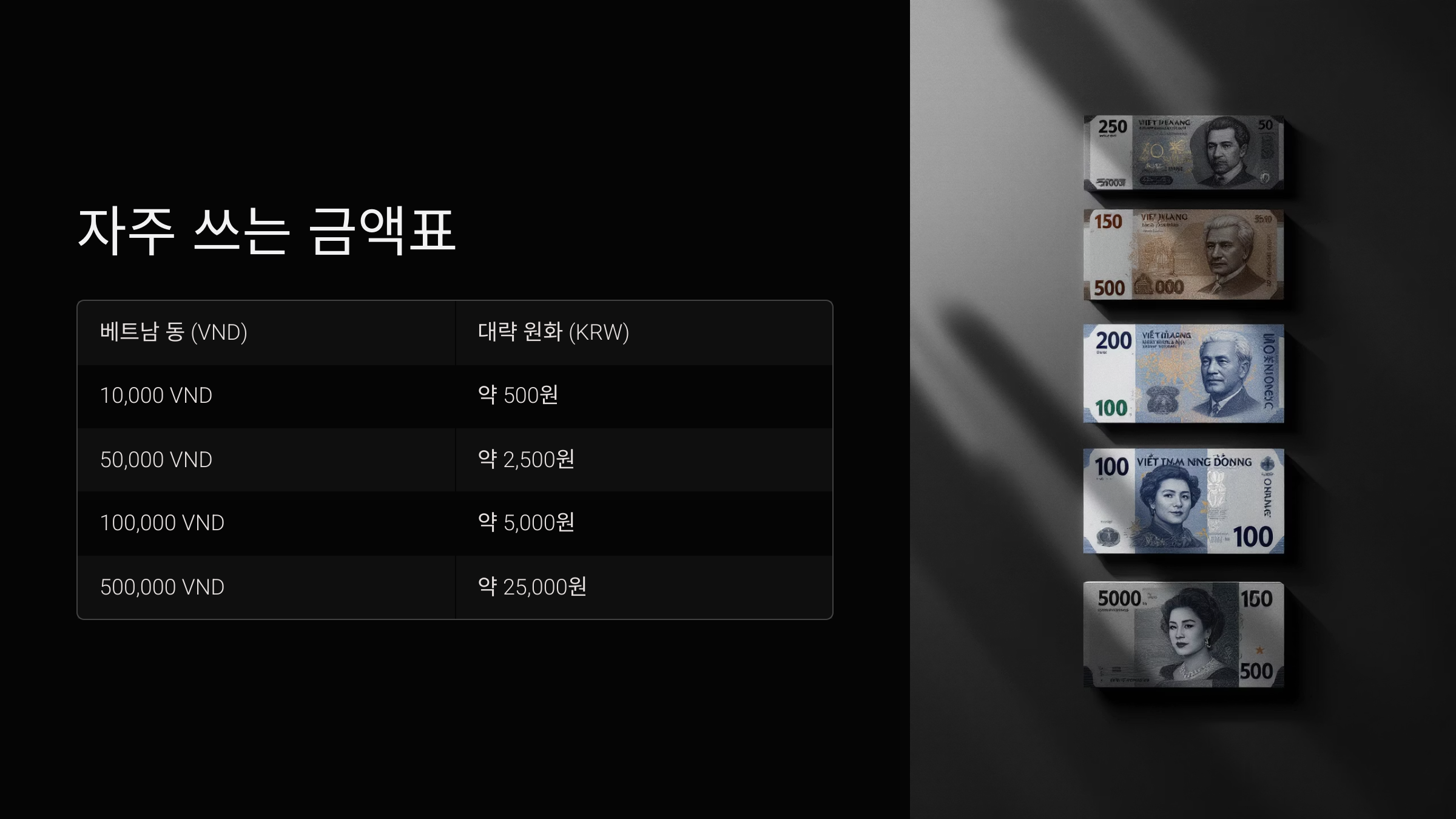 낯선 나라에서의 화폐 단위, 특히 베트남처럼 단위가 큰 경우엔 더더욱 계산이 어렵게 느껴지곤 해요.