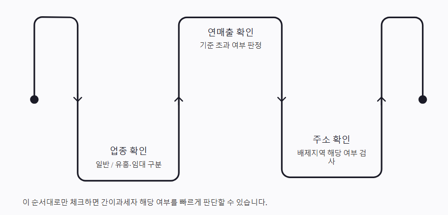일반 업종인지, 아니면 과세유흥장소나 부동산임대업인지 먼저 봐야 합니다. 이 단계에서 이미 기준 금액이 달라지기 때문에 가장 먼저 확인해야 하는 부분입니다.