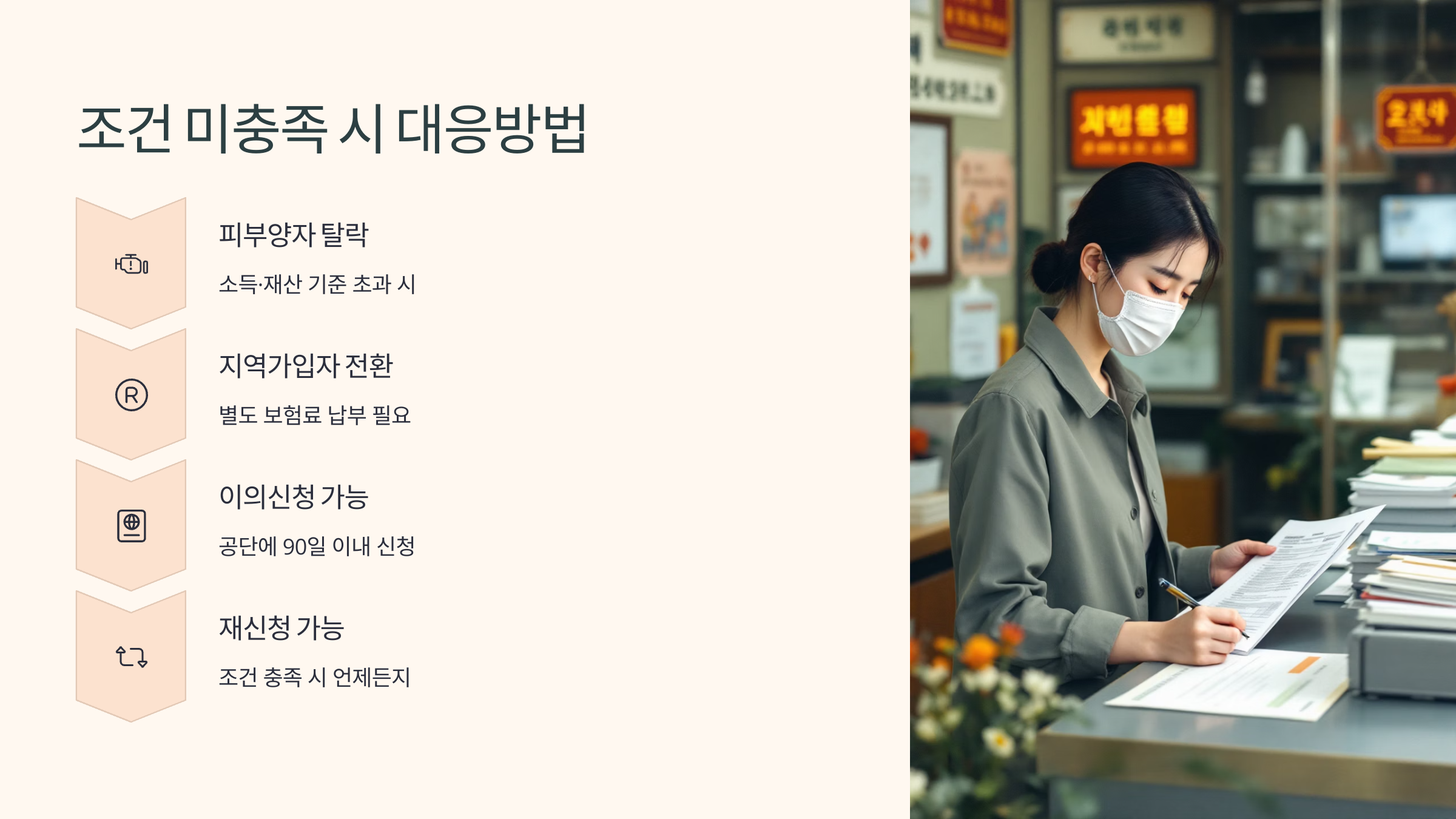 조건을 충족하지 못하면 자동으로 지역가입자로 전환되며, 본인이 직접 건강보험료를 납부해야 해요.