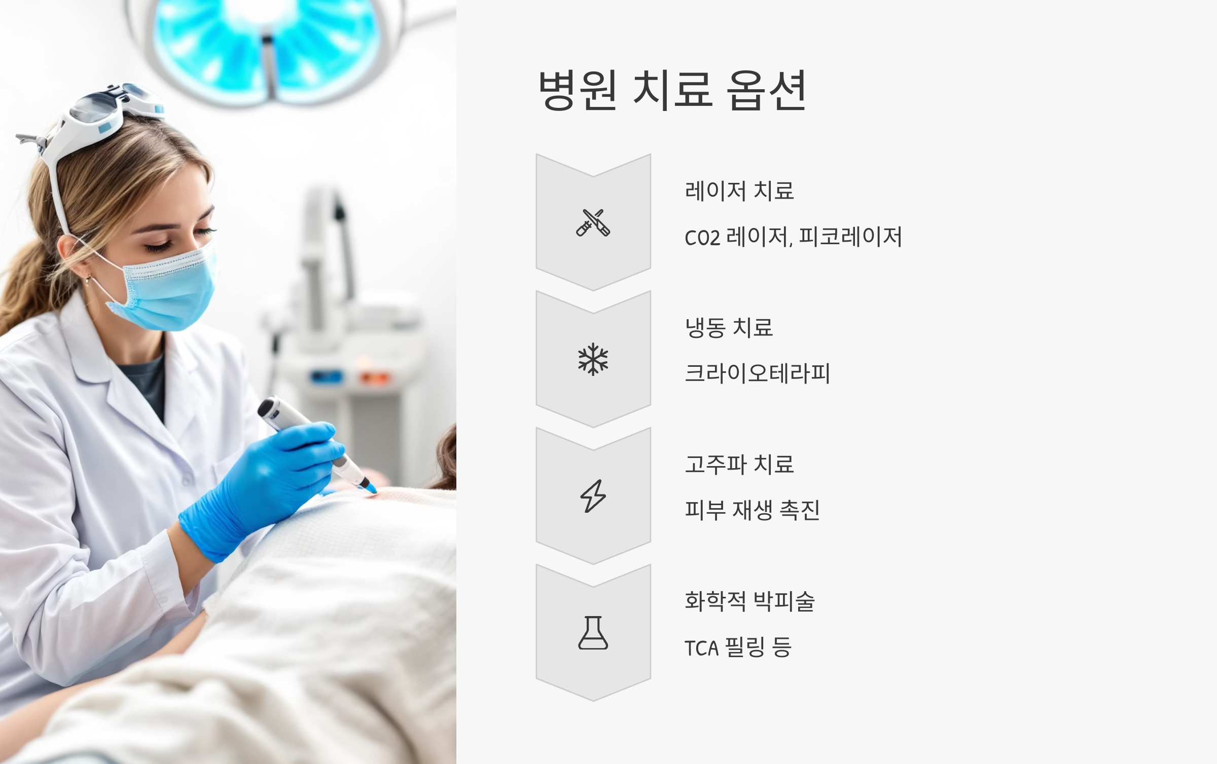 - 레이저 치료 (CO2 레이저, 피코레이저 등)