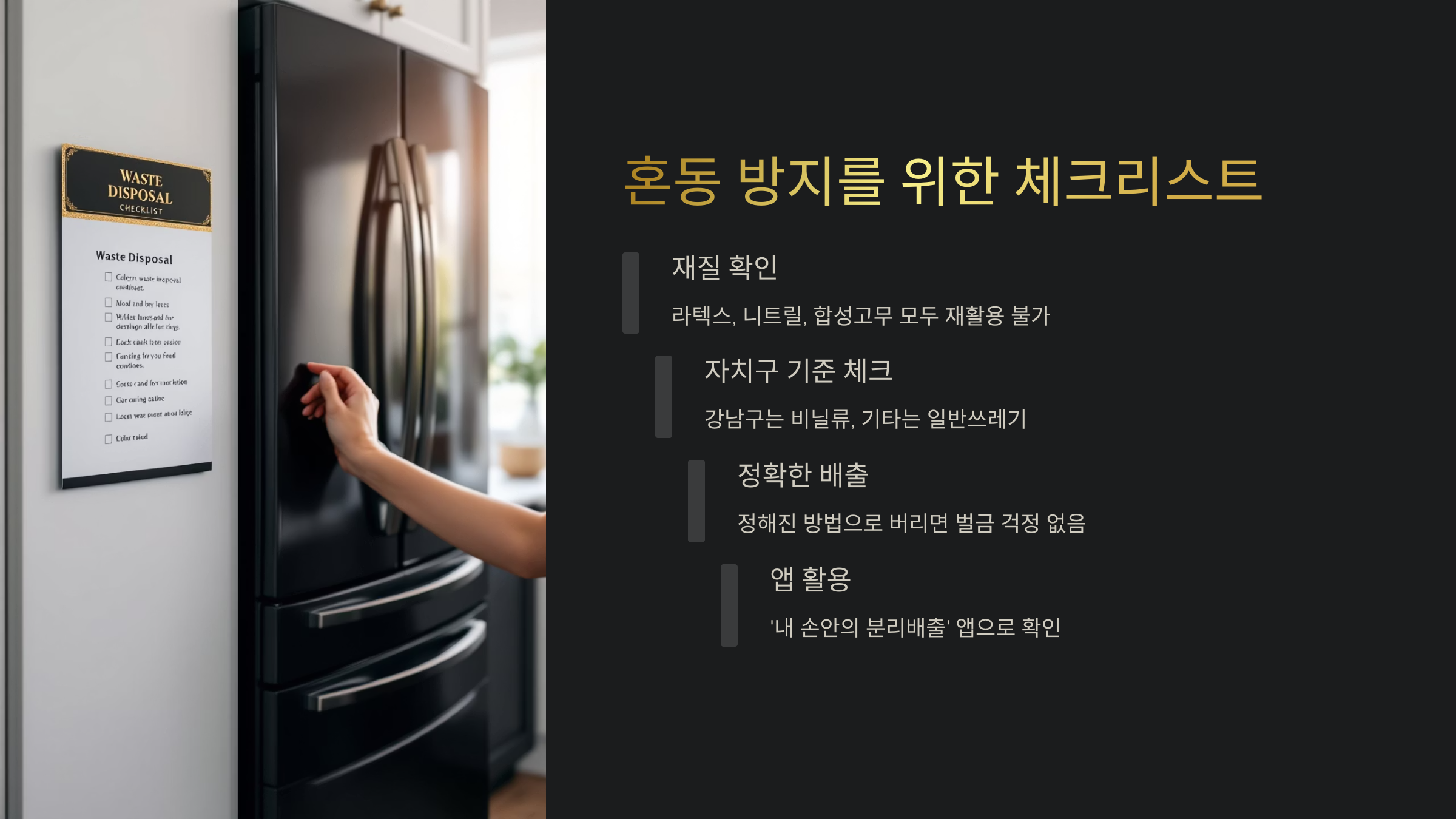 🔖 체크포인트 1: 고무장갑은 비닐류도 플라스틱류도 아닙니다.