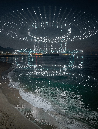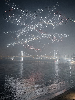 광안리 드론쇼는 광안리 해변 상공에서 다수의 드론이 군집 비행을 하며 다양한 이미지를 연출하는 상설 공연입니다.