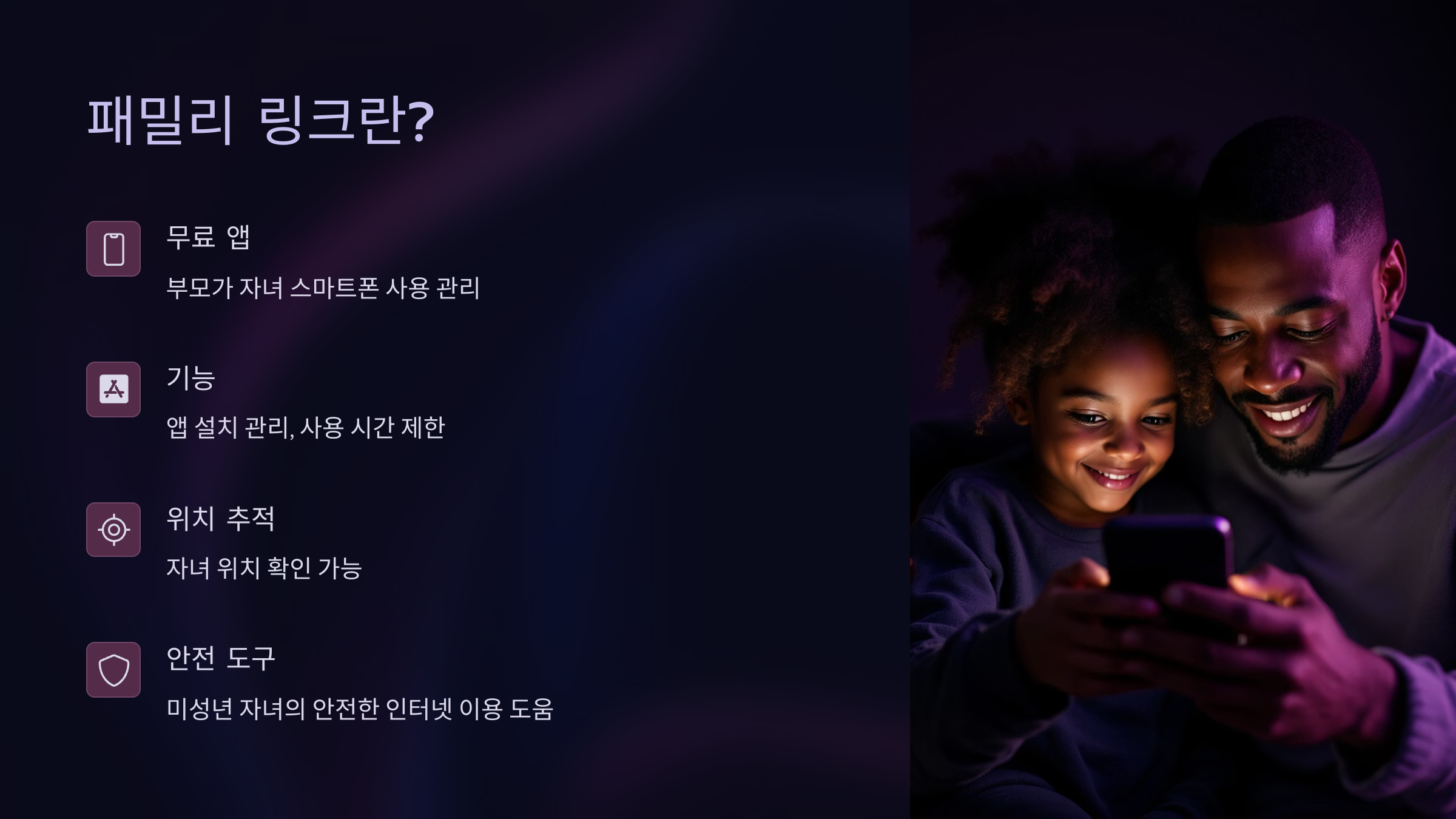어린 자녀가 스마트폰을 처음 사용할 때, 인터넷 사용을 안전하게 관리하고 싶을 때 필수입니다. 특히 초등학생 이하 연령대에서는 매우 효과적이에요.