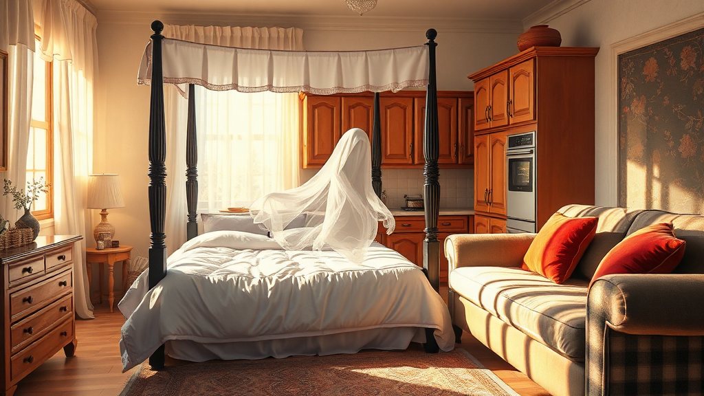 침실에서 귀신을 보는 꿈 | 사생활에 대한 불안감 또는 내면의 갈등 |