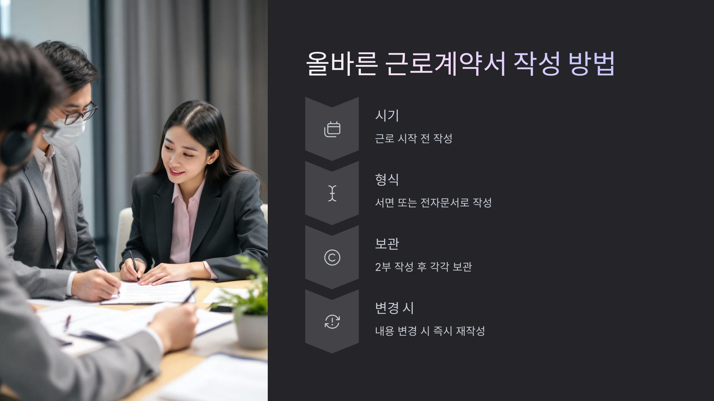 2. 서면 또는 전자문서로 작성해 당사자 서명 필수
