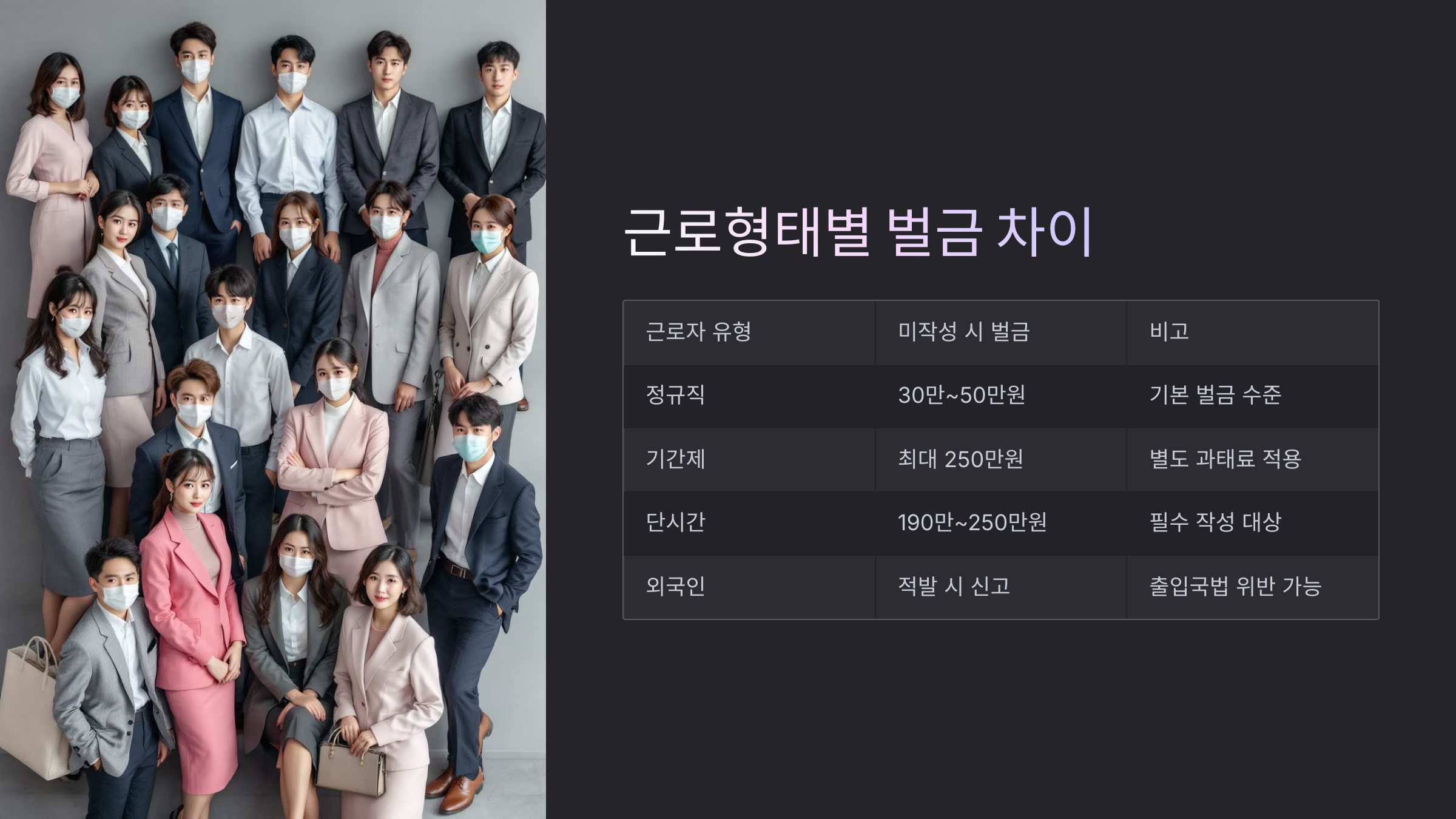 🔍 정규직 근로자 외에도, 기간제나 단시간 근로자의 경우는 추가적인 벌금이 부과될 수 있어요.