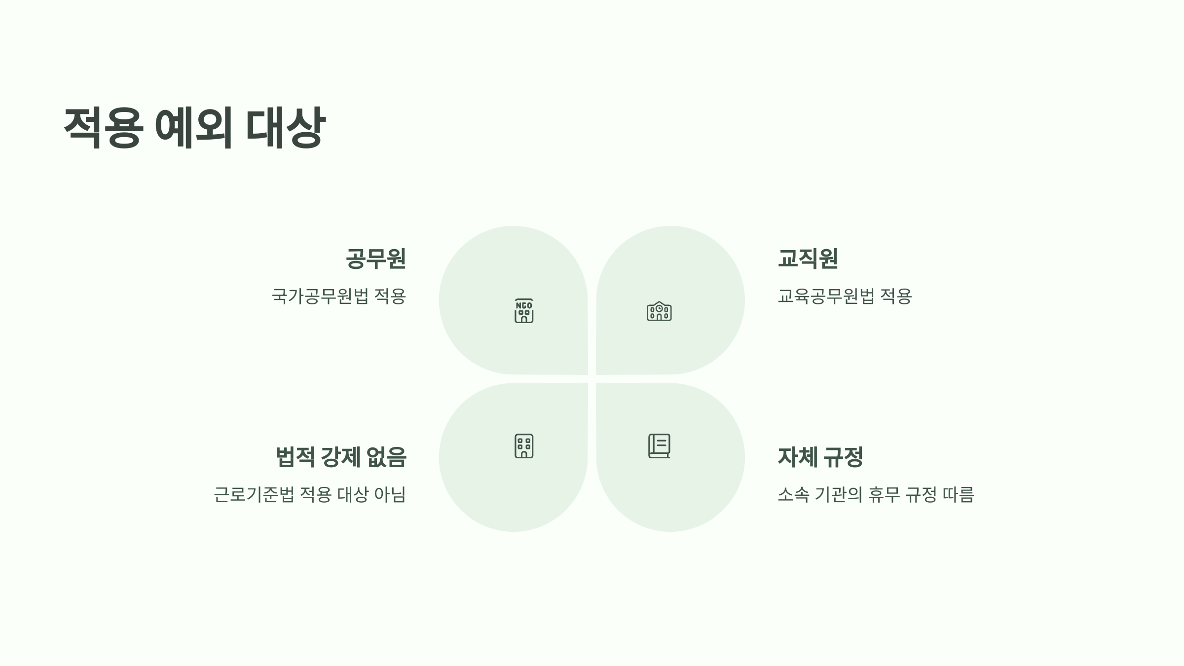 대신 이들은 국가공무원법, 교육공무원법 등에 따라 자체적으로 운영되는 공식 휴무 규정을 따르기 때문에