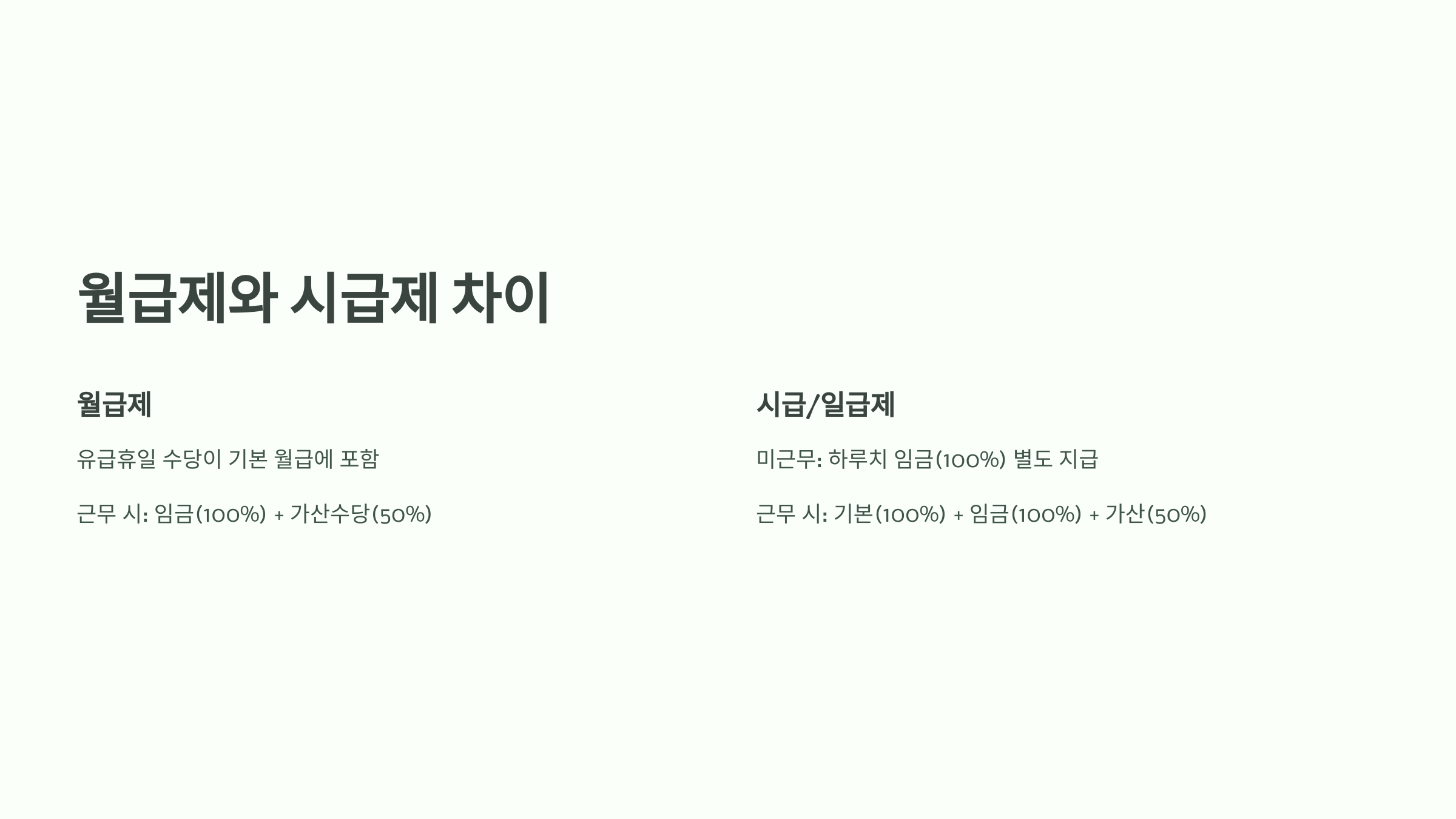 | 월급제 | 월급에 포함 | 월급 + 150% 추가 | 월급 + 200% 추가 |