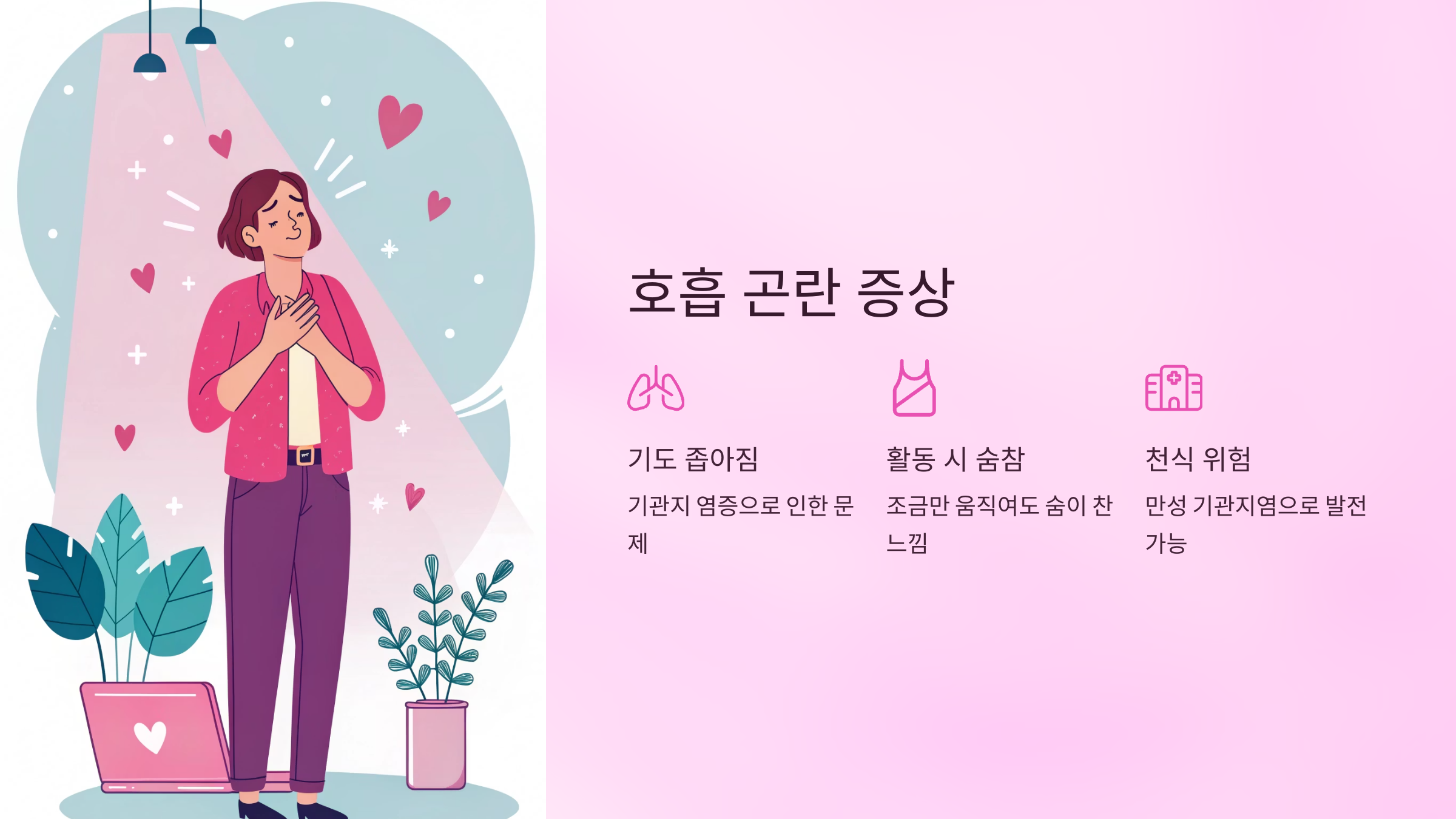 이는 단순한 피로가 아니라, 기관지의 염증으로 기도가 좁아져 생기는 호흡기 문제일 수 있어요.