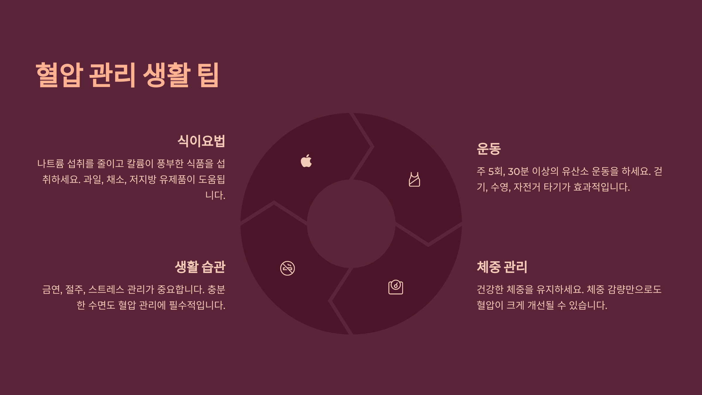 지금부터 실천할 수 있는 혈압 관리 팁들을 소개할게요.