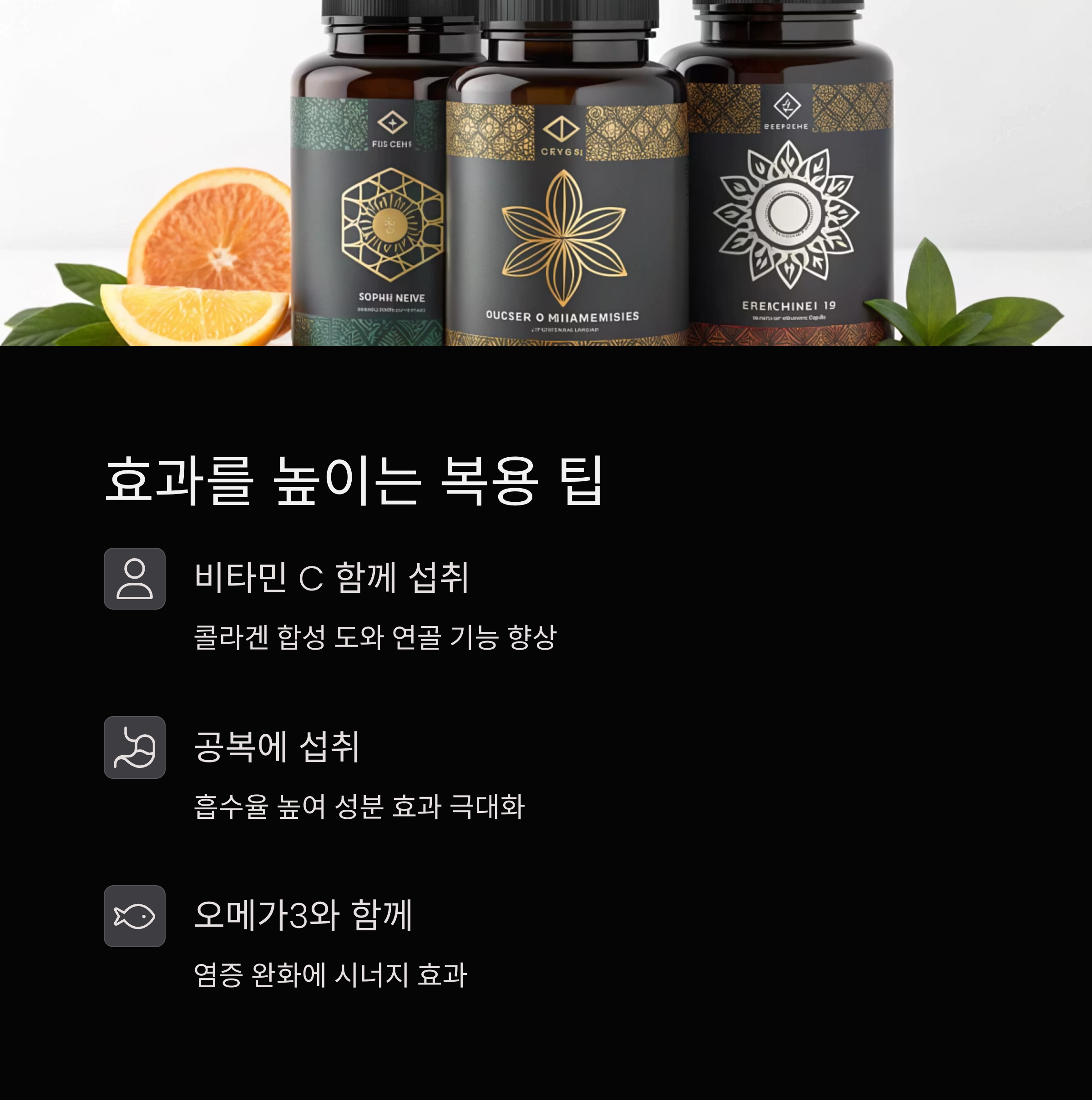 🔖 비타민 C와 함께 복용: 콜라겐 합성을 도와 연골 기능을 높여줘요