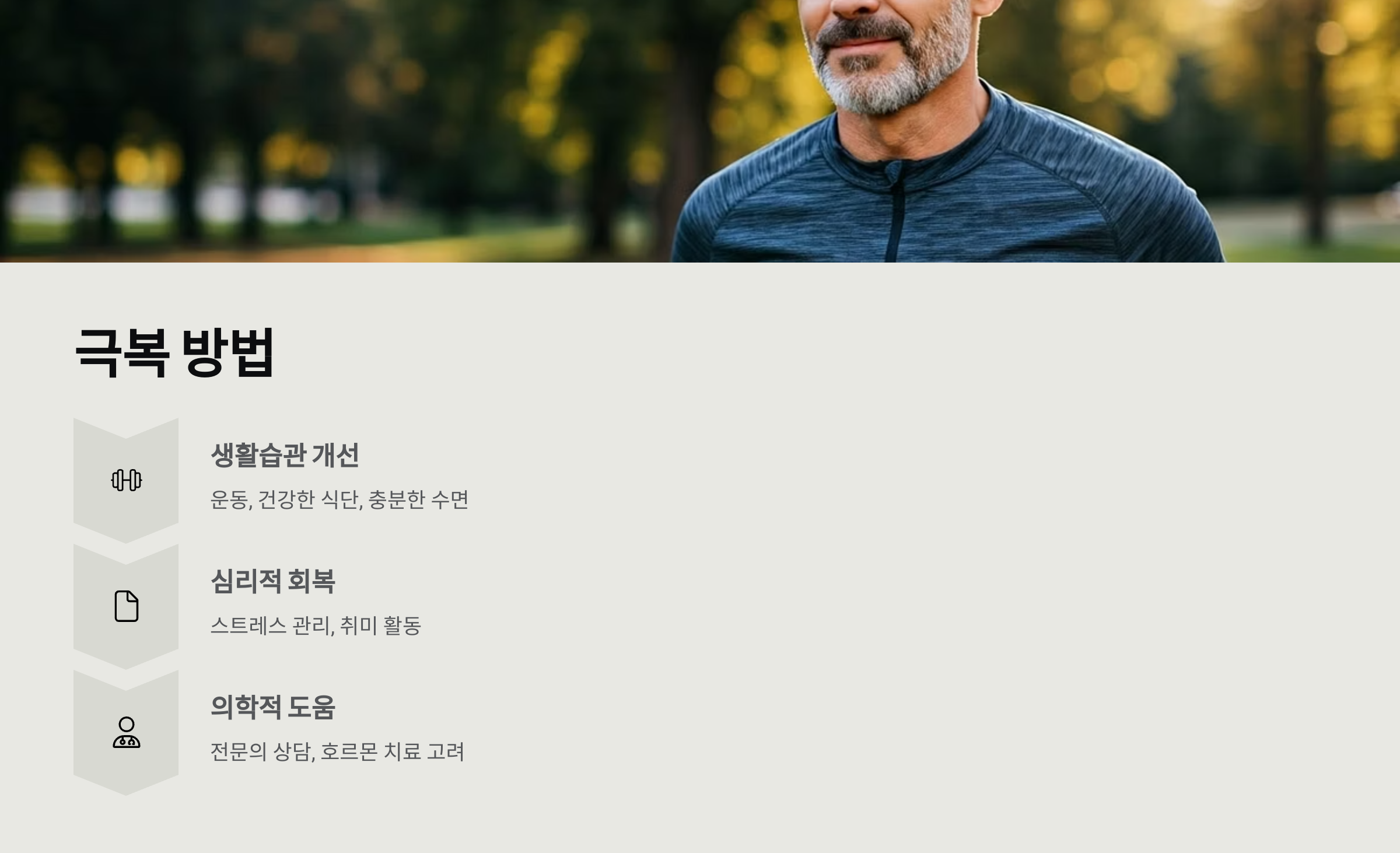 그렇다면 남성 갱년기를 어떻게 극복할 수 있을까요?