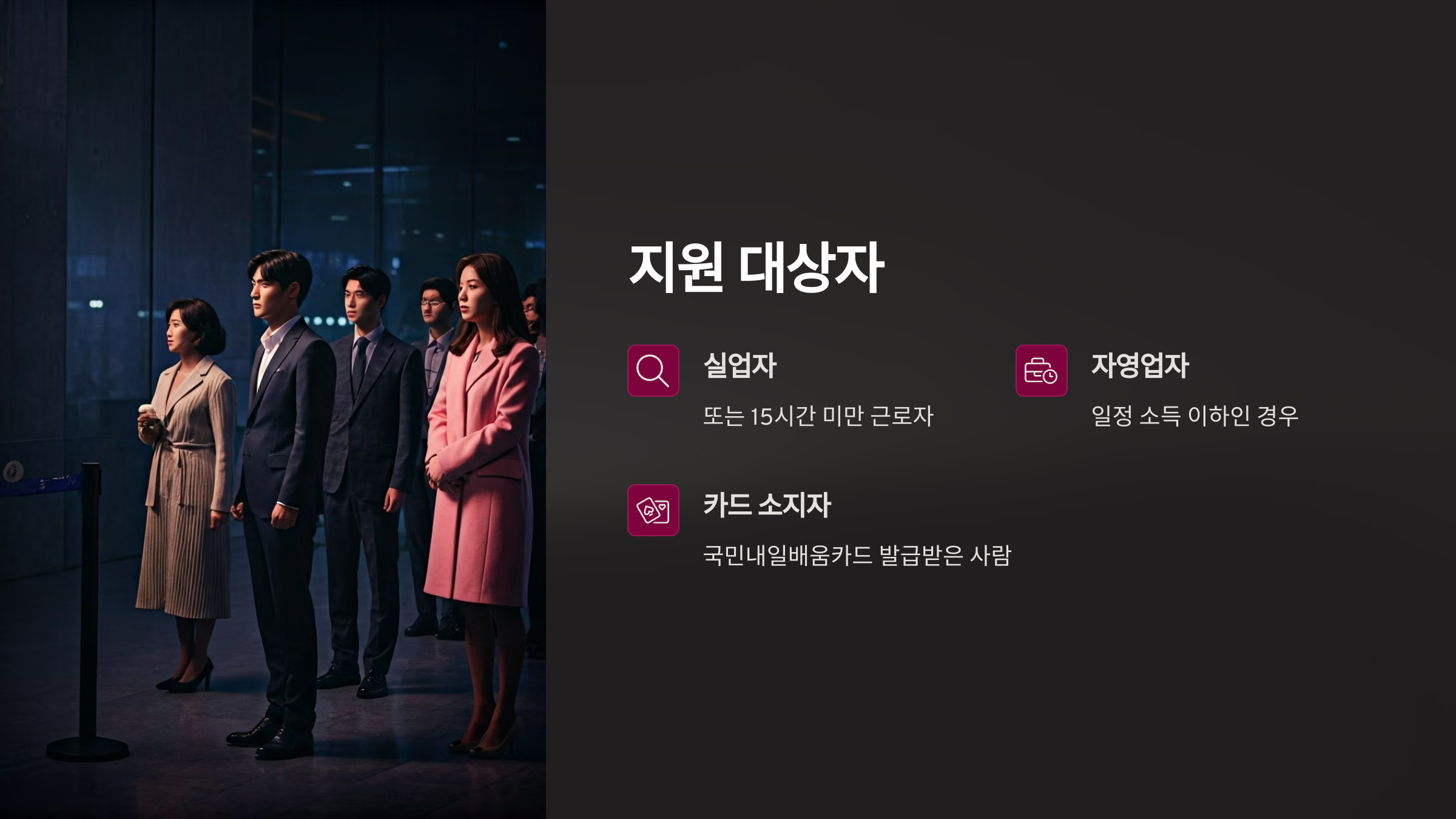 ⚠️ 주의: 실업급여 수급자나 일부 정부 일자리 사업 참여자는 중복 지급이 안될 수 있어요!