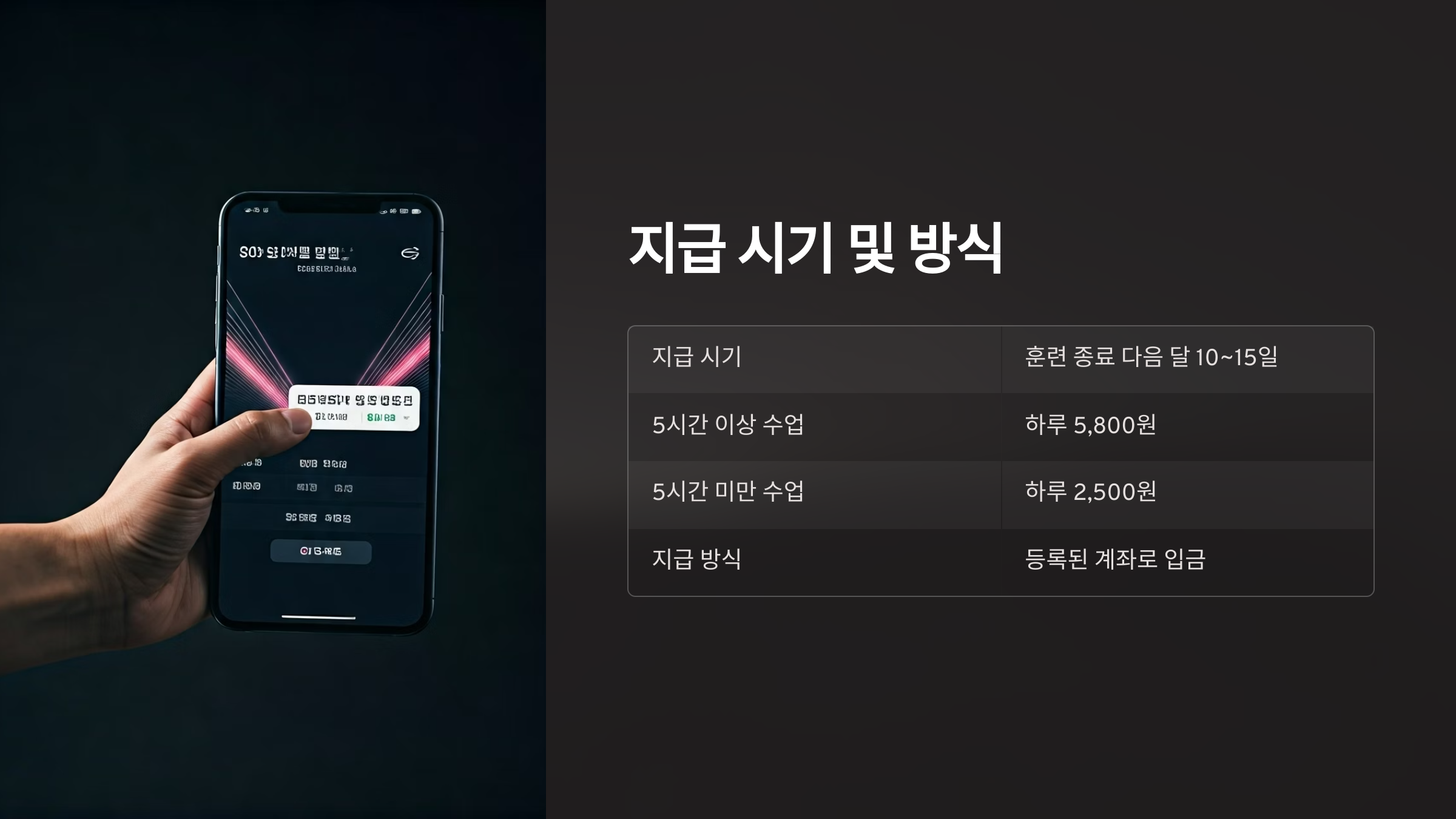 이제 막 훈련을 시작하셨거나, 지급 조건이 궁금하신 분들께 특히 유용한 정보가 될 거예요.