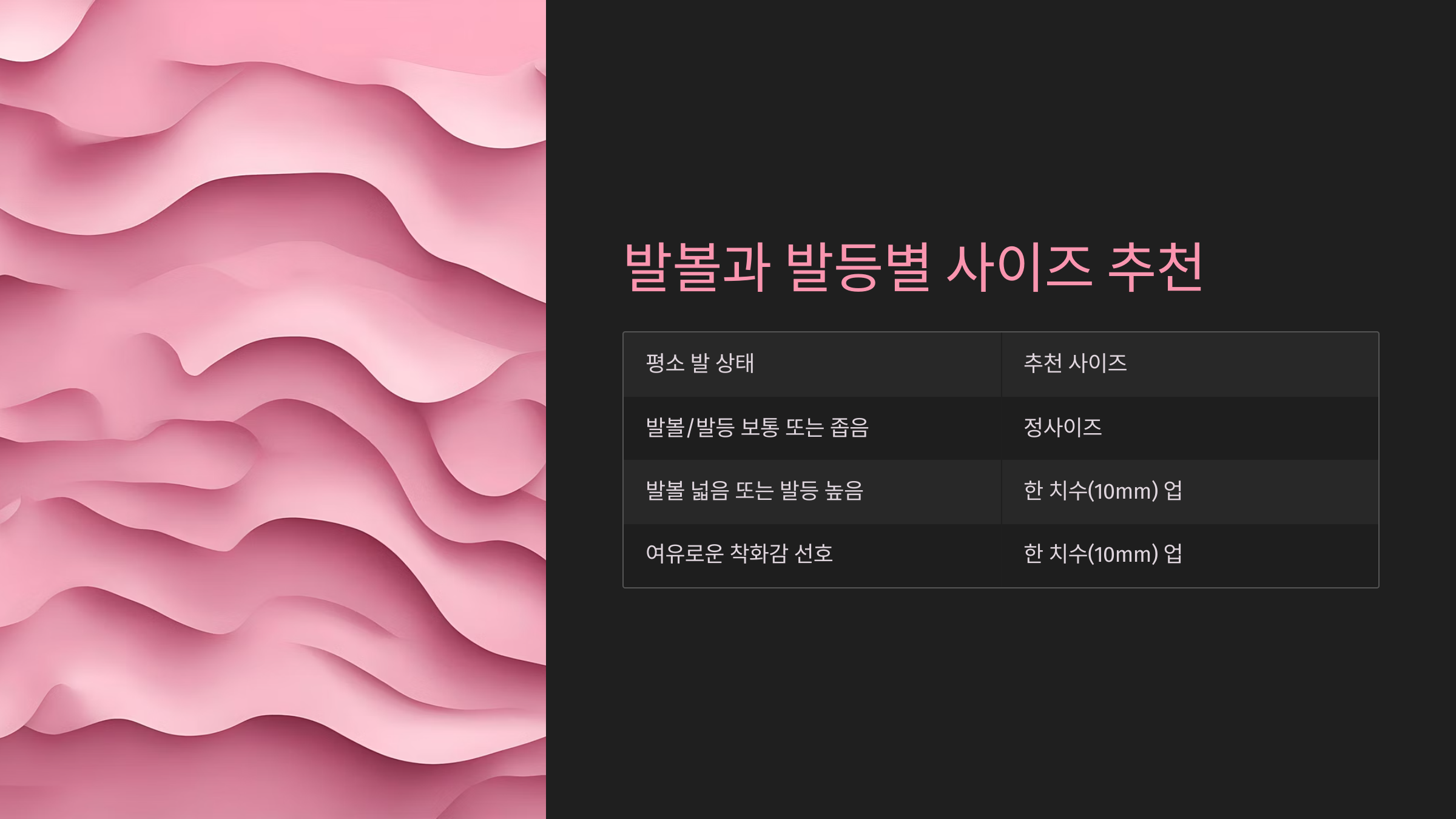 발볼 넓거나 발등 높다면 무조건 한 치수 업!
