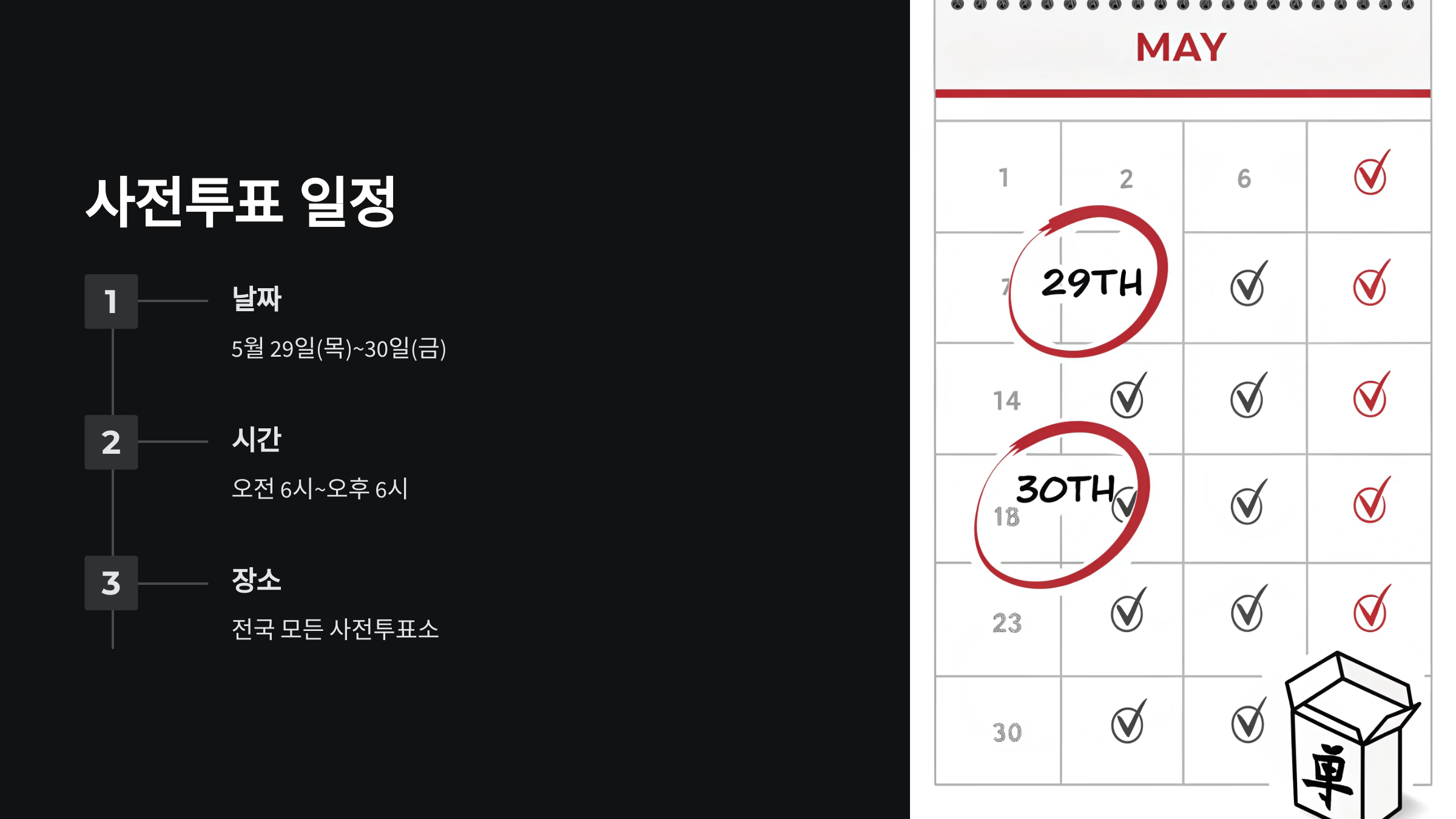 🔖 체크포인트 1: 사전투표일은 5월 29일~30일