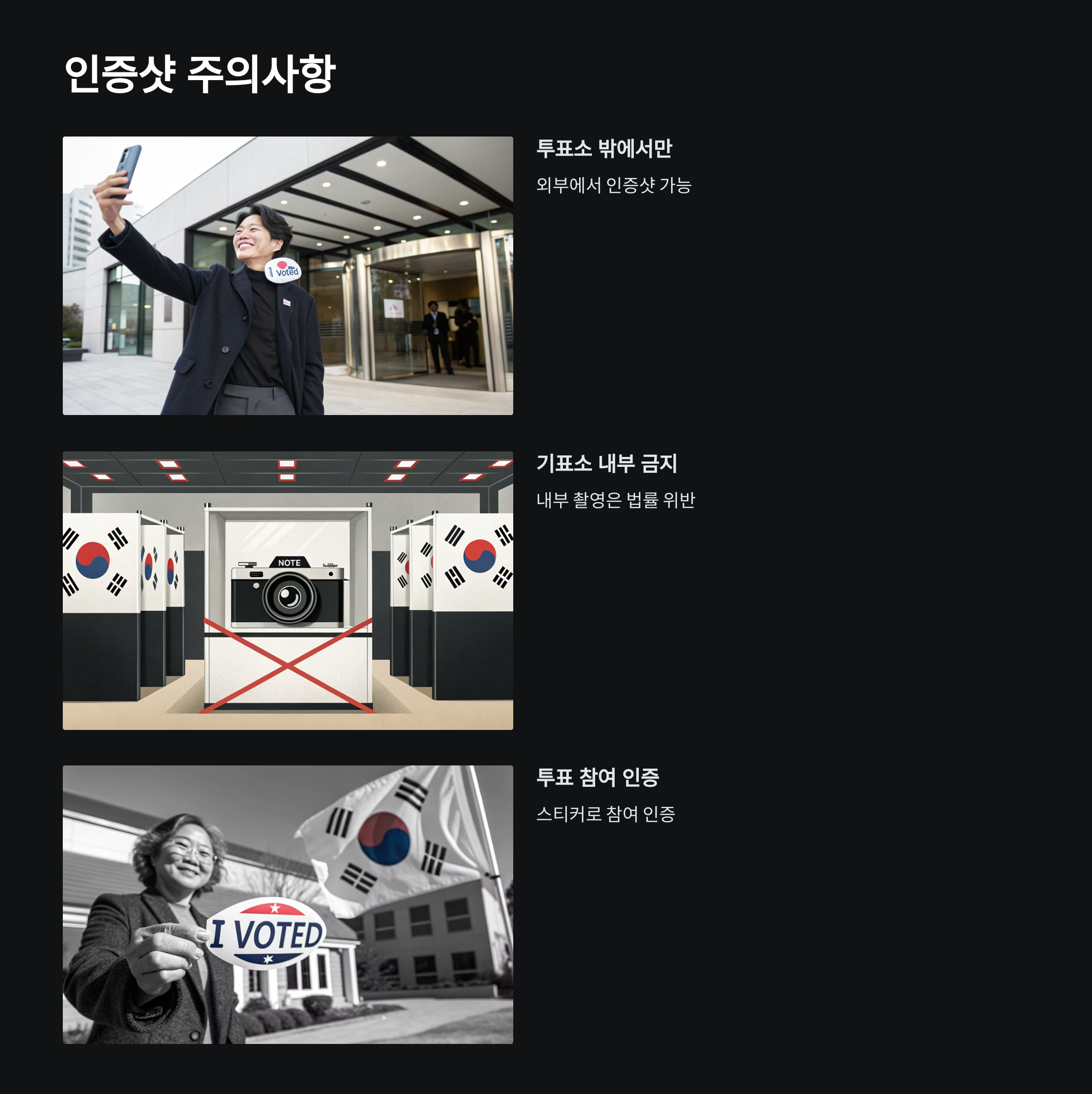 ⚠️ 주의: 투표소 및 기표소 내 사진 촬영은 엄격히 금지되어 있어요.