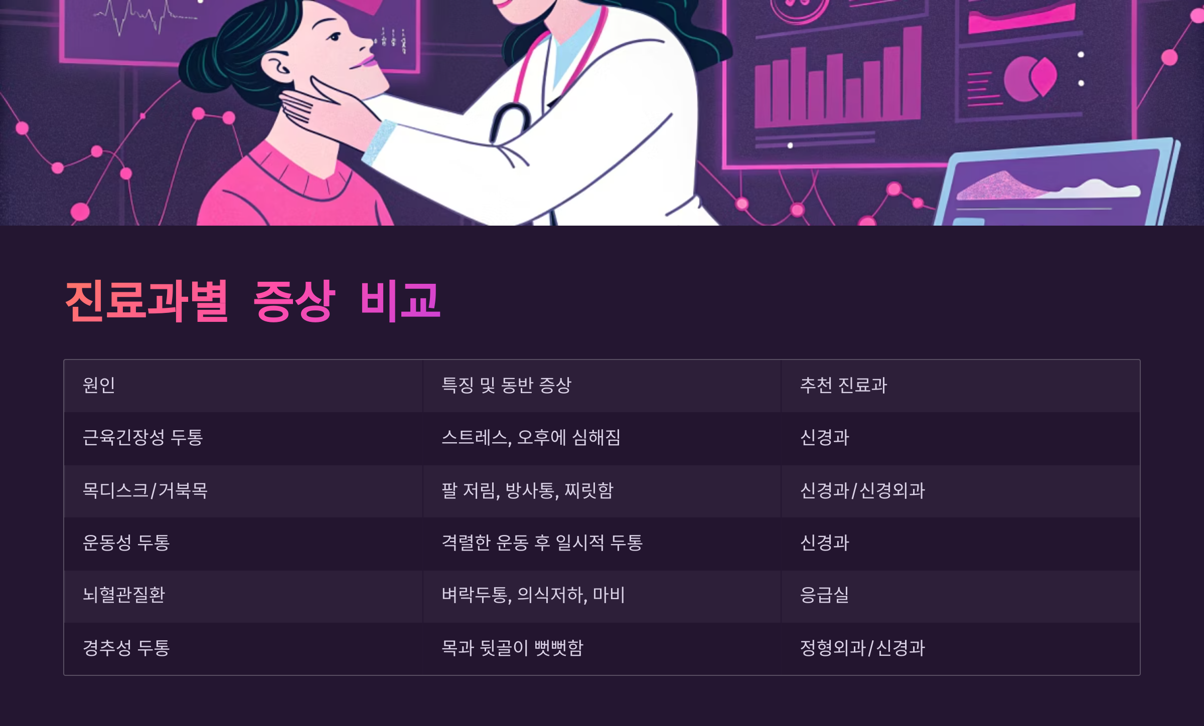이번 포스팅에서는 뒷골 땡김 증상이 있을 때 어떤 진료과를 찾아가야 할지, 증상별로 꼼꼼히 정리해드릴게요.