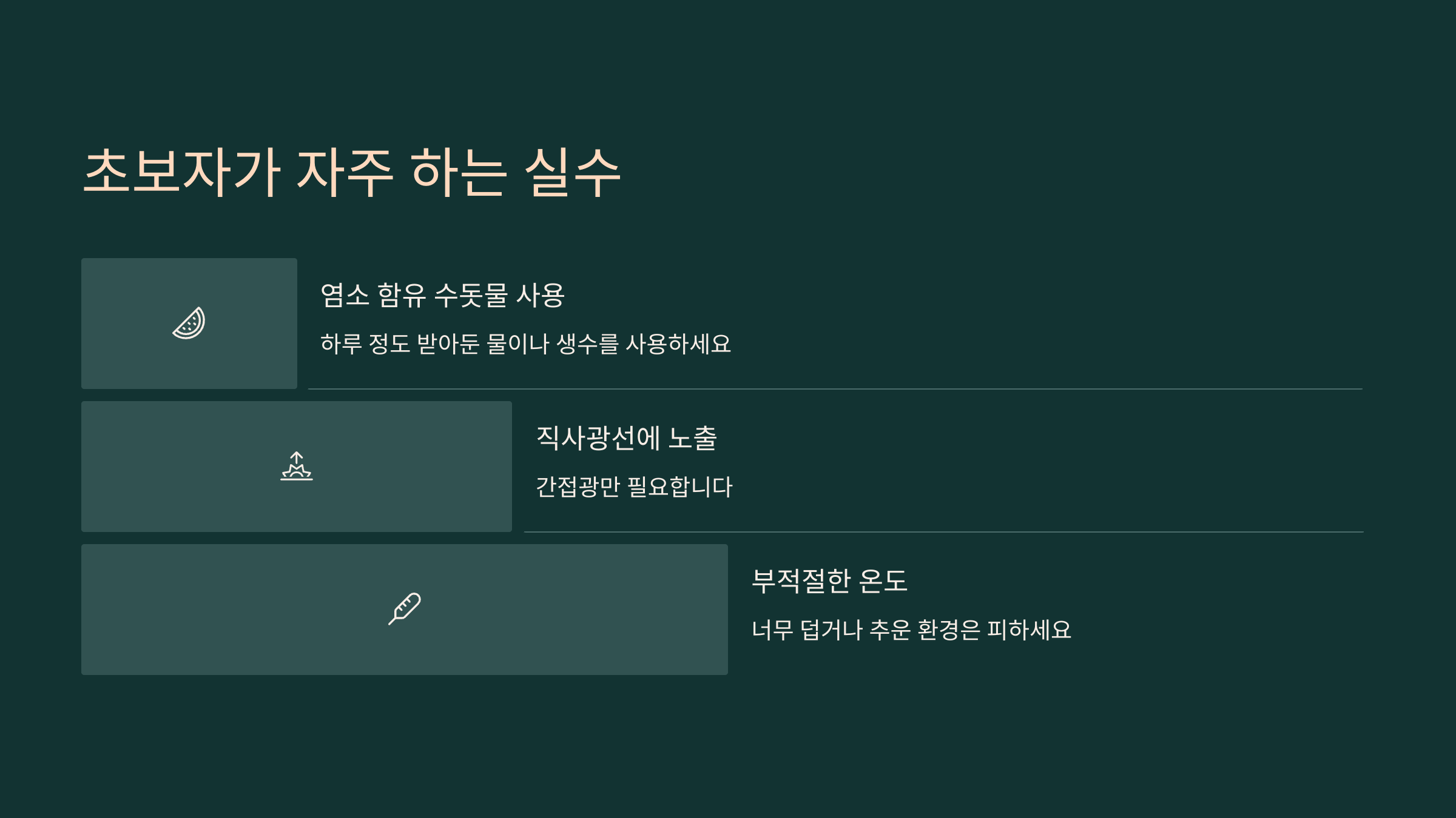 처음엔 초록초록 말랑말랑 너무 예쁘지만, 제대로 관리하지 않으면 쉽게 시들어버릴 수 있어요.