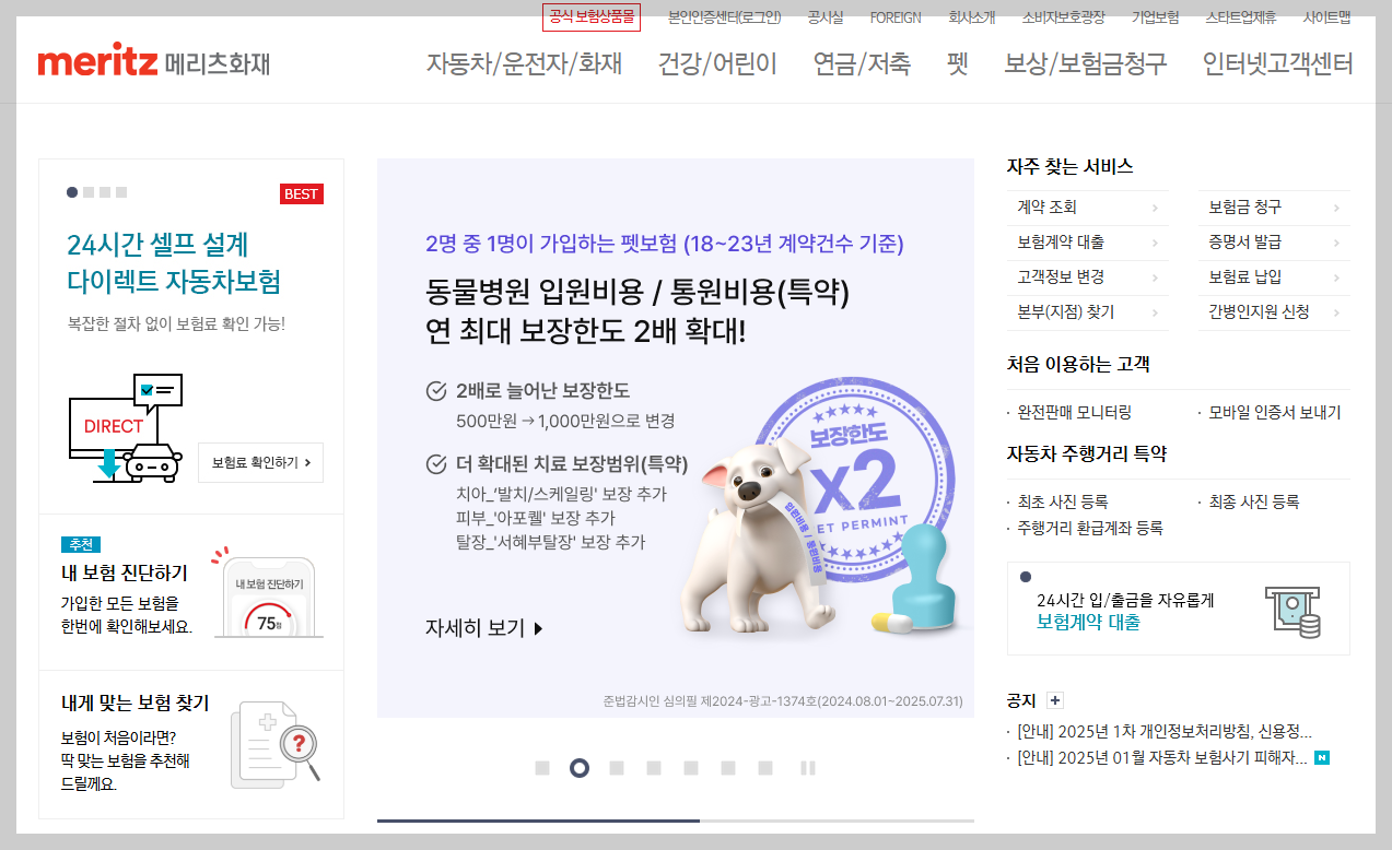- 메리츠화재 공식 홈페이지 접속인터넷 브라우저에서 메리츠화재 홈페이지에 접속하세요.