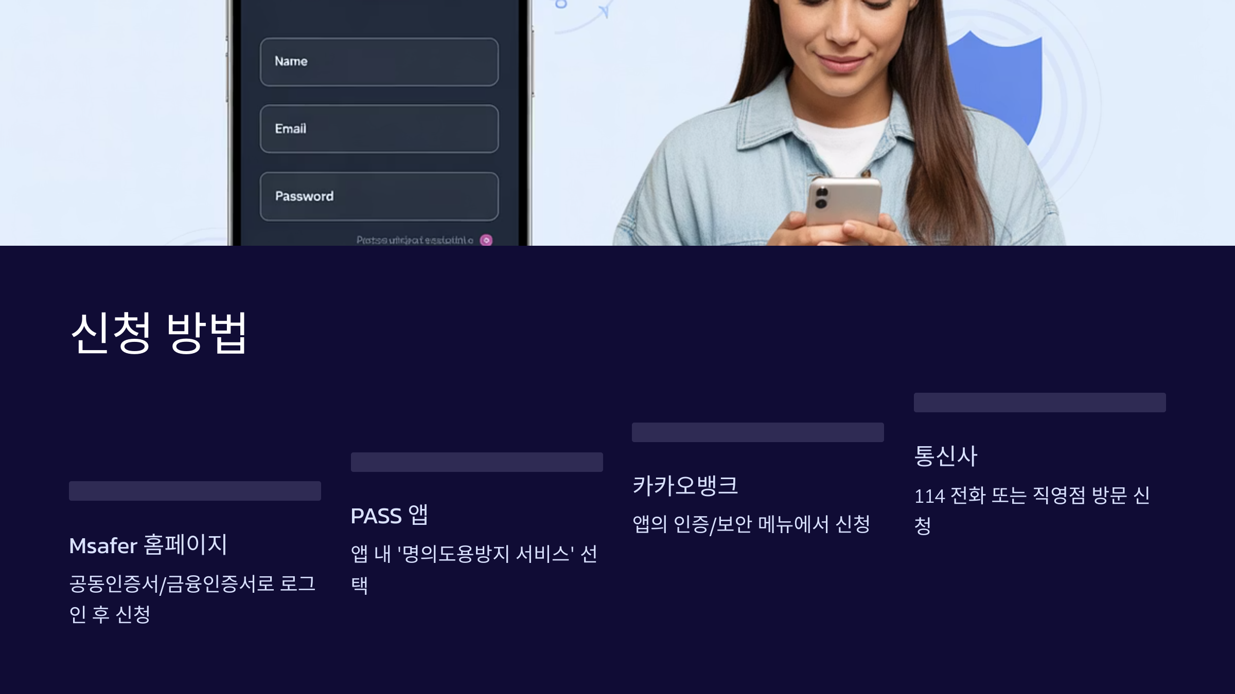 간단한 신청만으로도 여러분의 명의를 지킬 수 있으니, 지금 바로 명의도용방지 서비스를 활성화해보세요.