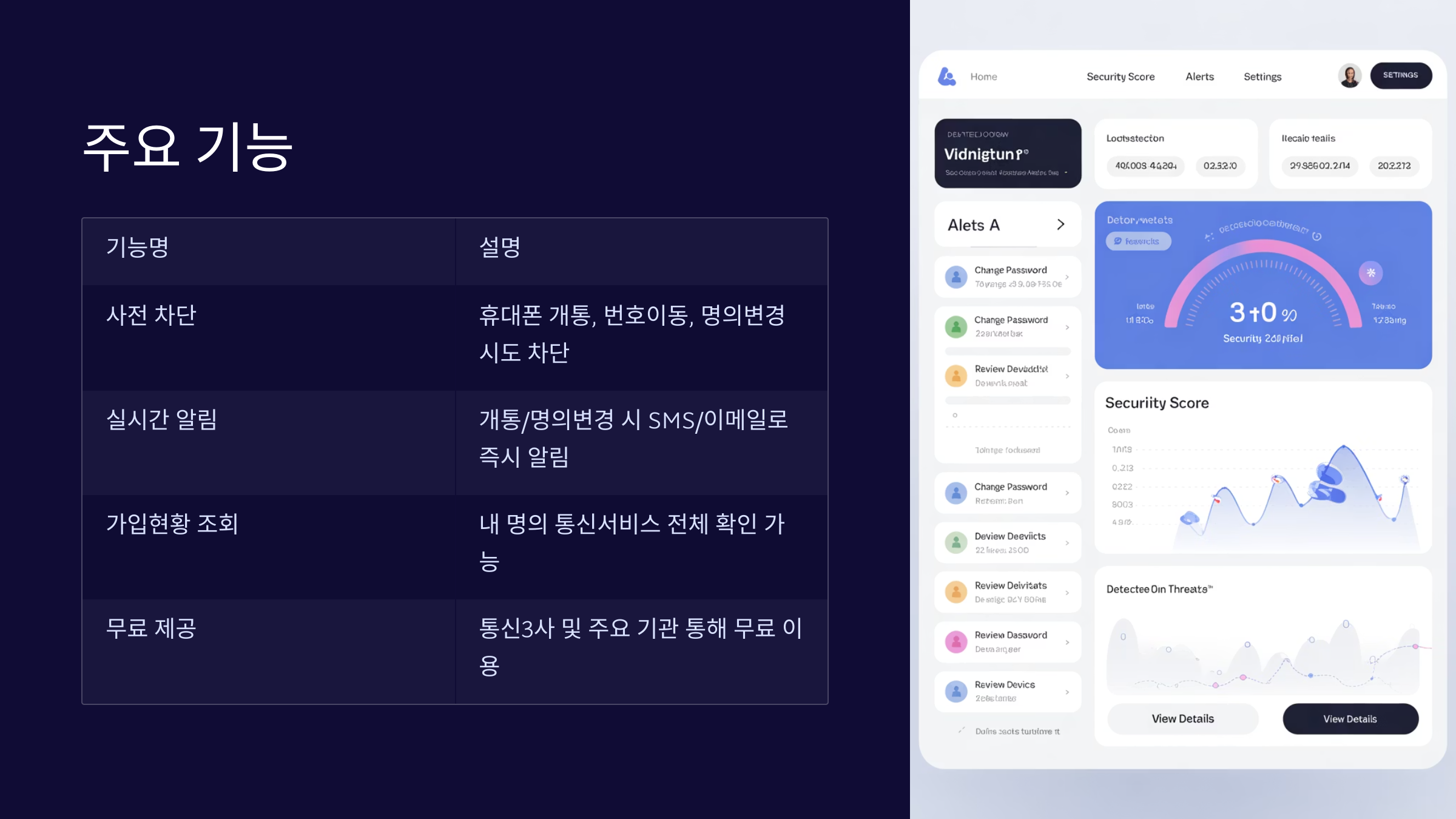실시간 알림 | 통신 서비스 개통이나 명의변경 시 SMS 또는 이메일로 즉시 알림 발송 |
