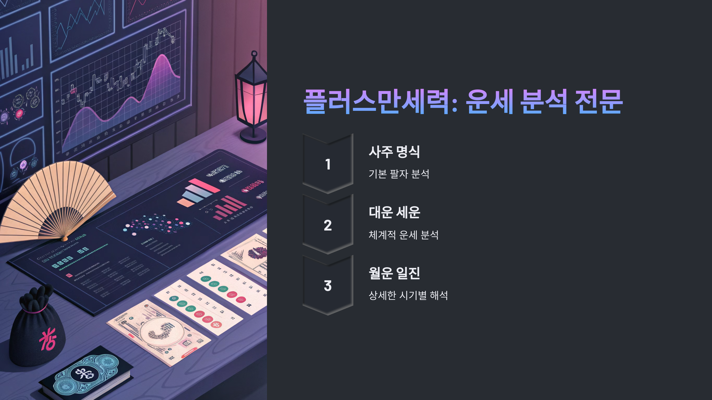 사주는 고정된 운명을 뜻하진 않아요. 이해를 바탕으로 삶을 더 나은 방향으로 이끄는 ‘가이드’ 역할을 한다고 생각하시면 좋습니다.
