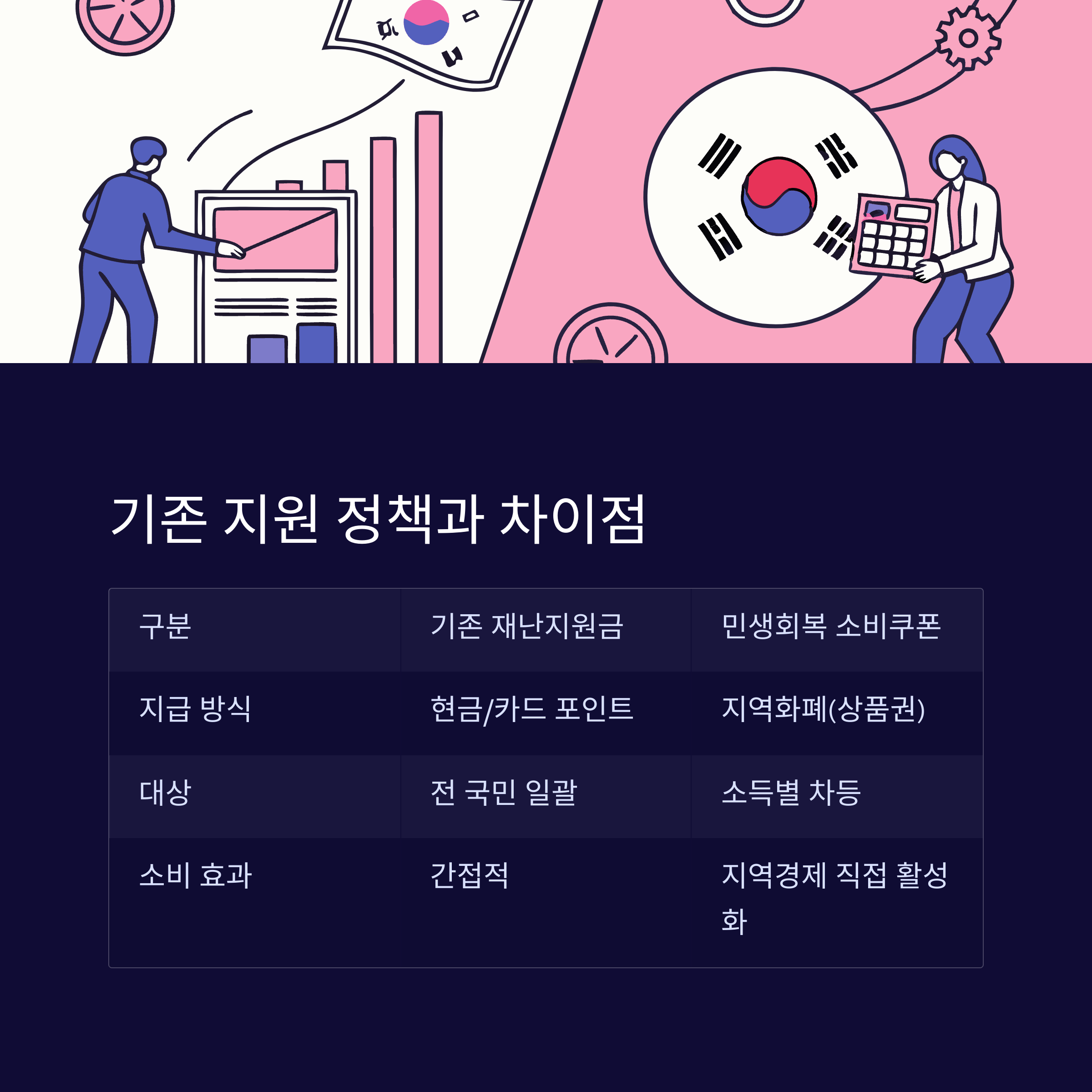 | 지급 방식 | 현금 혹은 신용카드 포인트 | 지역화폐(상품권) |