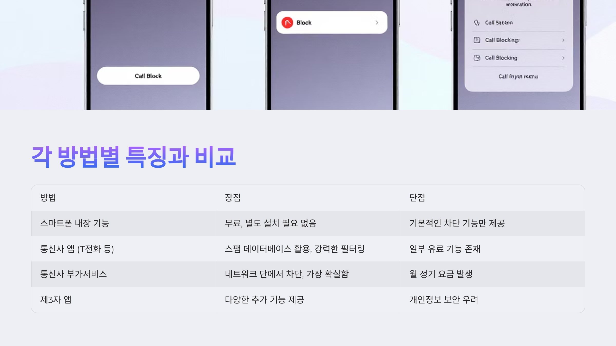 이제는 그런 고민 끝! 📴 갤럭시, 아이폰, T전화 앱, 통신사 부가서비스까지… 각 상황에 맞춘 차단 방법을 한눈에 보기 쉽게 정리해드릴게요.