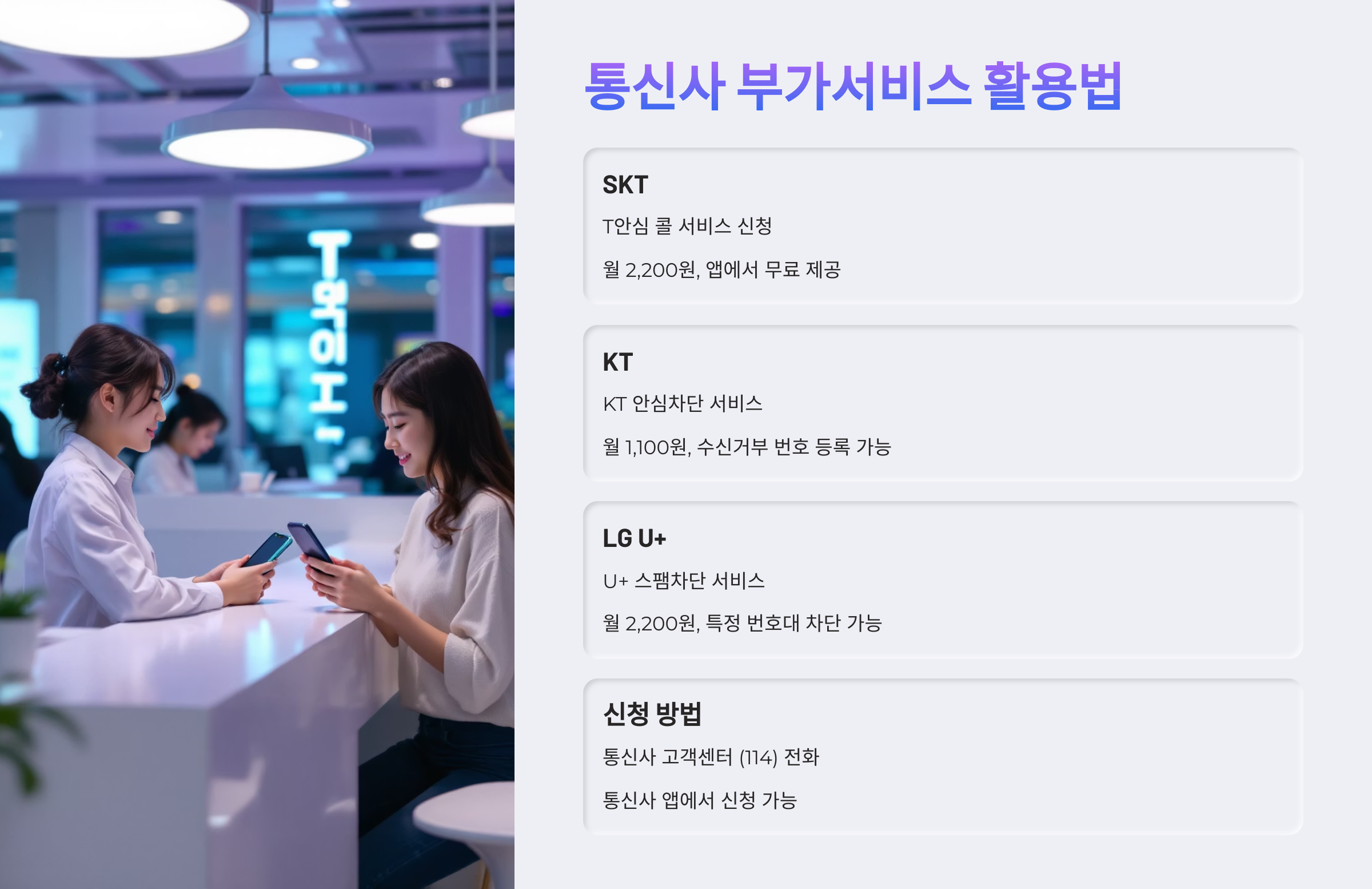 스마트폰 설정이나 앱보다 더 강력한 차단을 원하신다면, 각 통신사의 부가서비스를 활용하는 방법도 있어요.