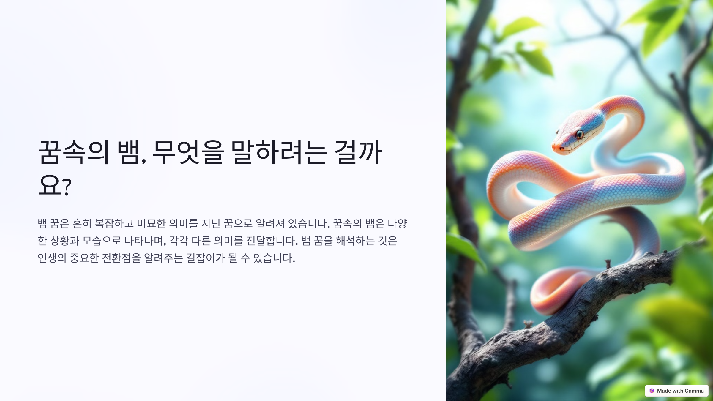 - 재물과 부: 뱀은 전통적으로 재물운과 깊은 관련이 있습니다. 특히 흰 뱀이나 금빛 뱀은 큰 재물이 들어올 징조로 여겨집니다.