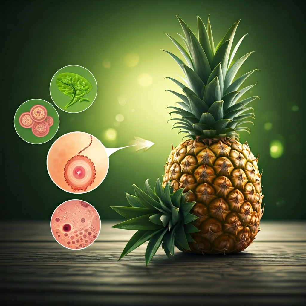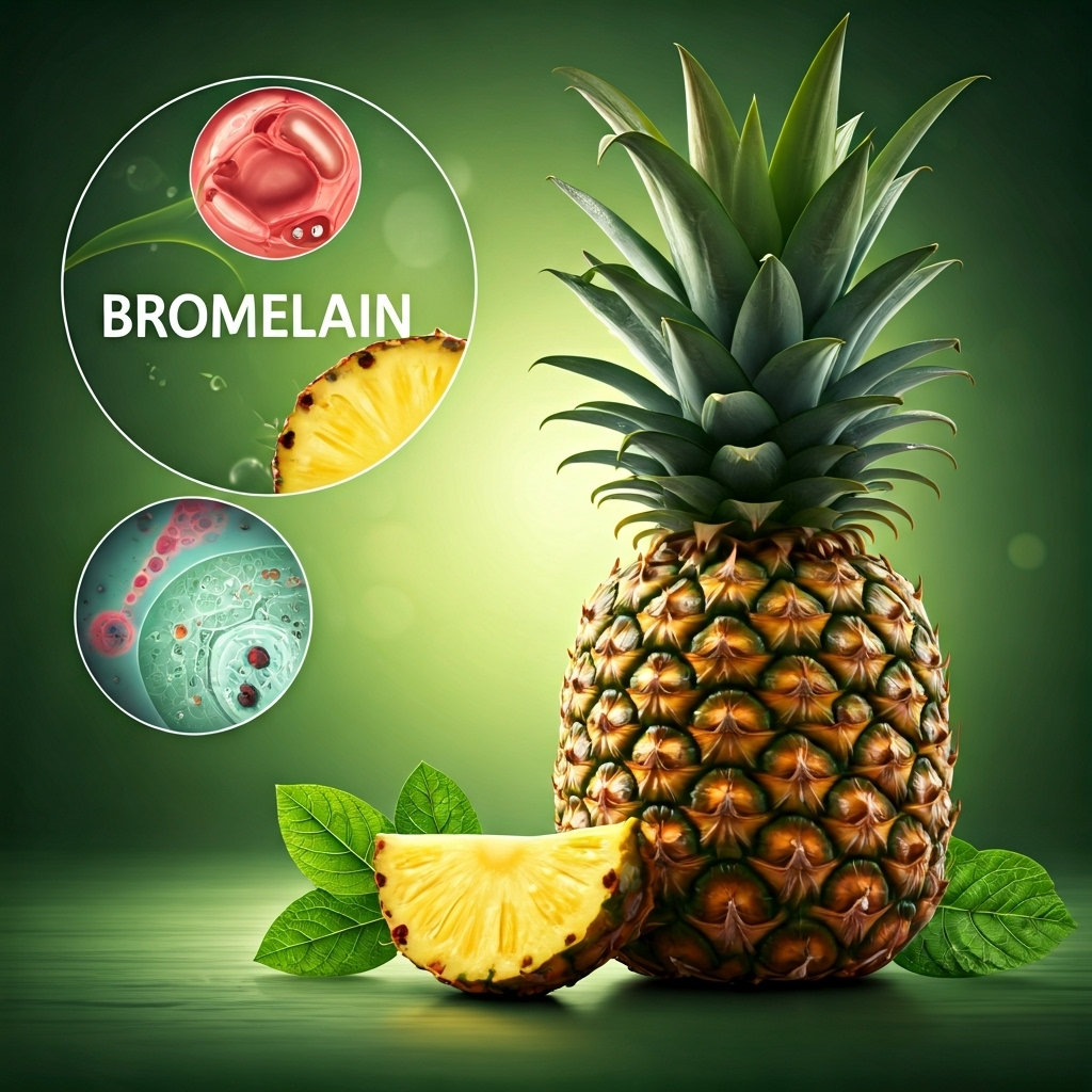 - 브로멜라인은 단백질 분해 효소로 소화와 염증 완화에 효과적입니다.