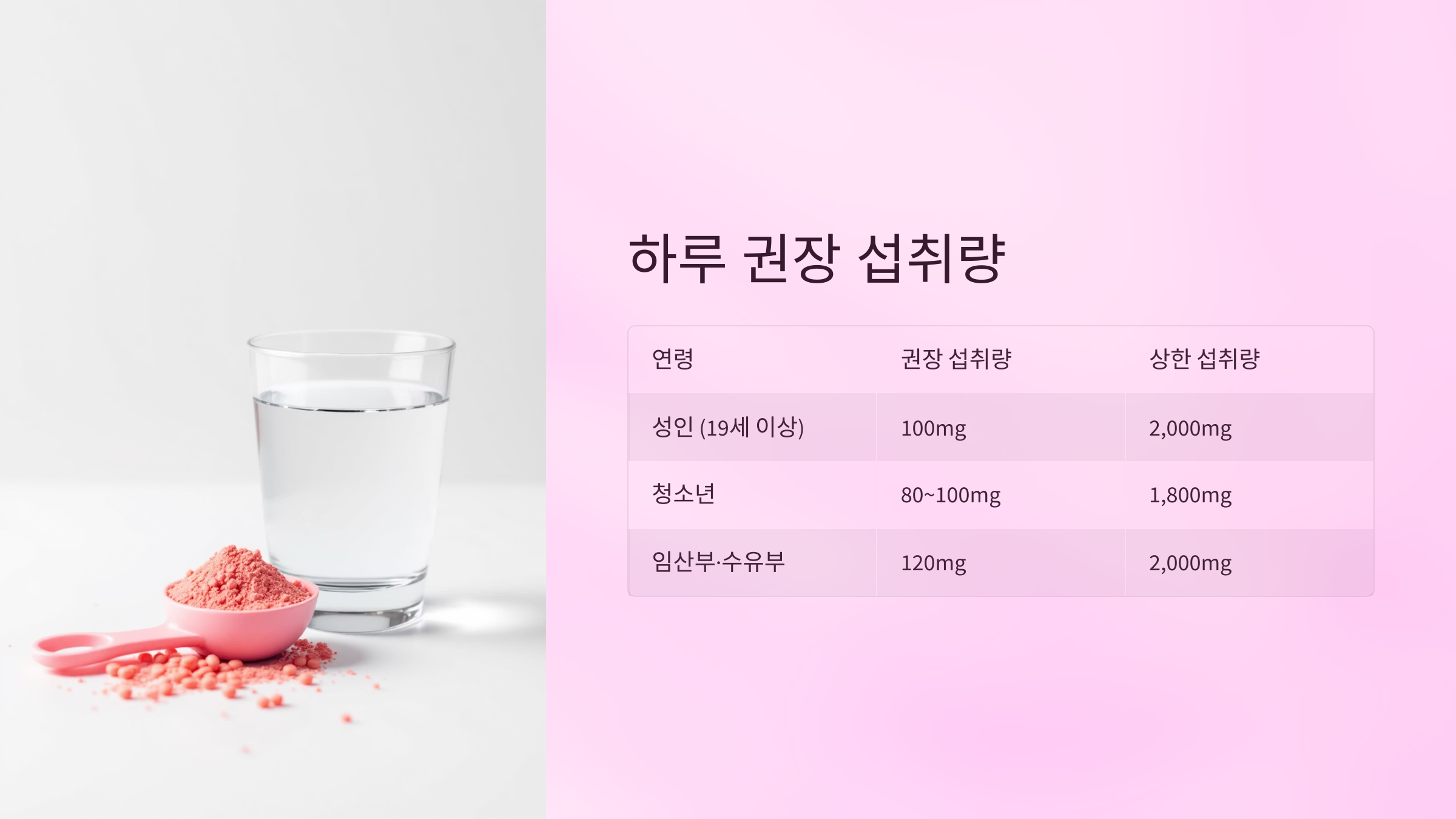 지나친 섭취는 오히려 부작용을 유발할 수 있으므로 상한선은 꼭 지켜주세요!