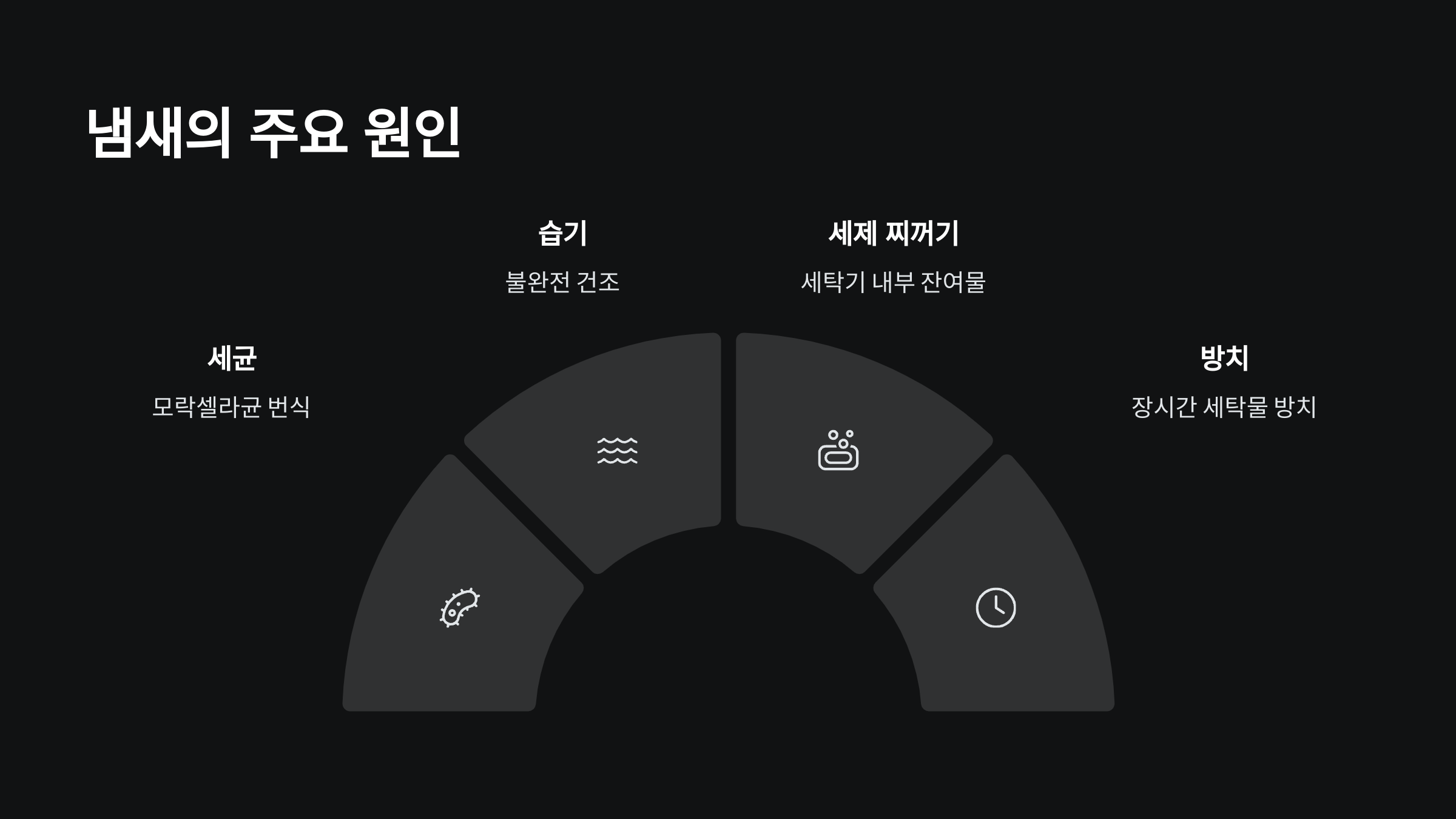 이처럼 냄새는 '세균 + 습기 + 세제 찌꺼기' 삼각 조합에서 비롯된다는 것!