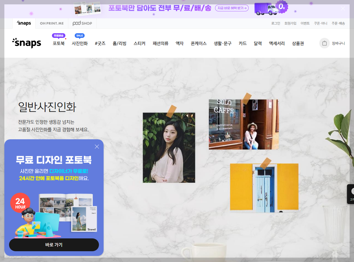 스냅스(Snaps)는 고품질 인화와 포토굿즈 제작에 강점을 둔 사진인화 플랫폼이에요.