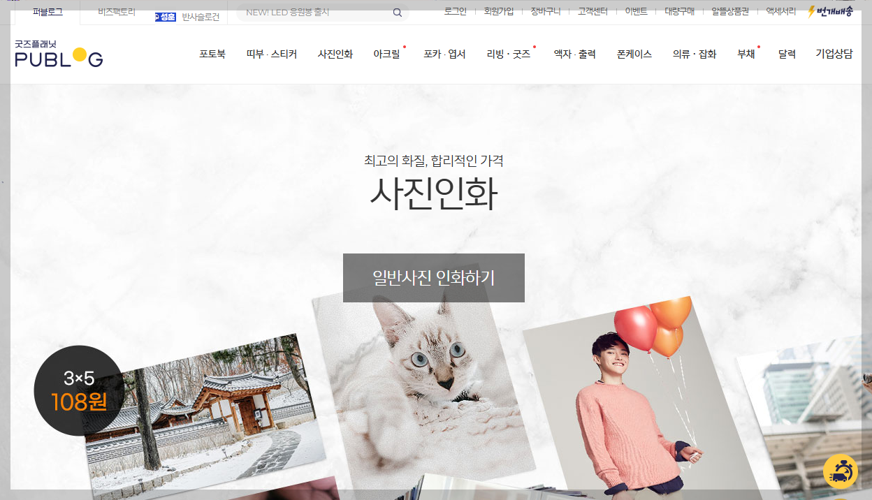 퍼블로그(publog)는 사진 인화 업계에서 최저가를 자랑하는 사이트로, 특히 빠른 번개배송 서비스가 강점이에요.