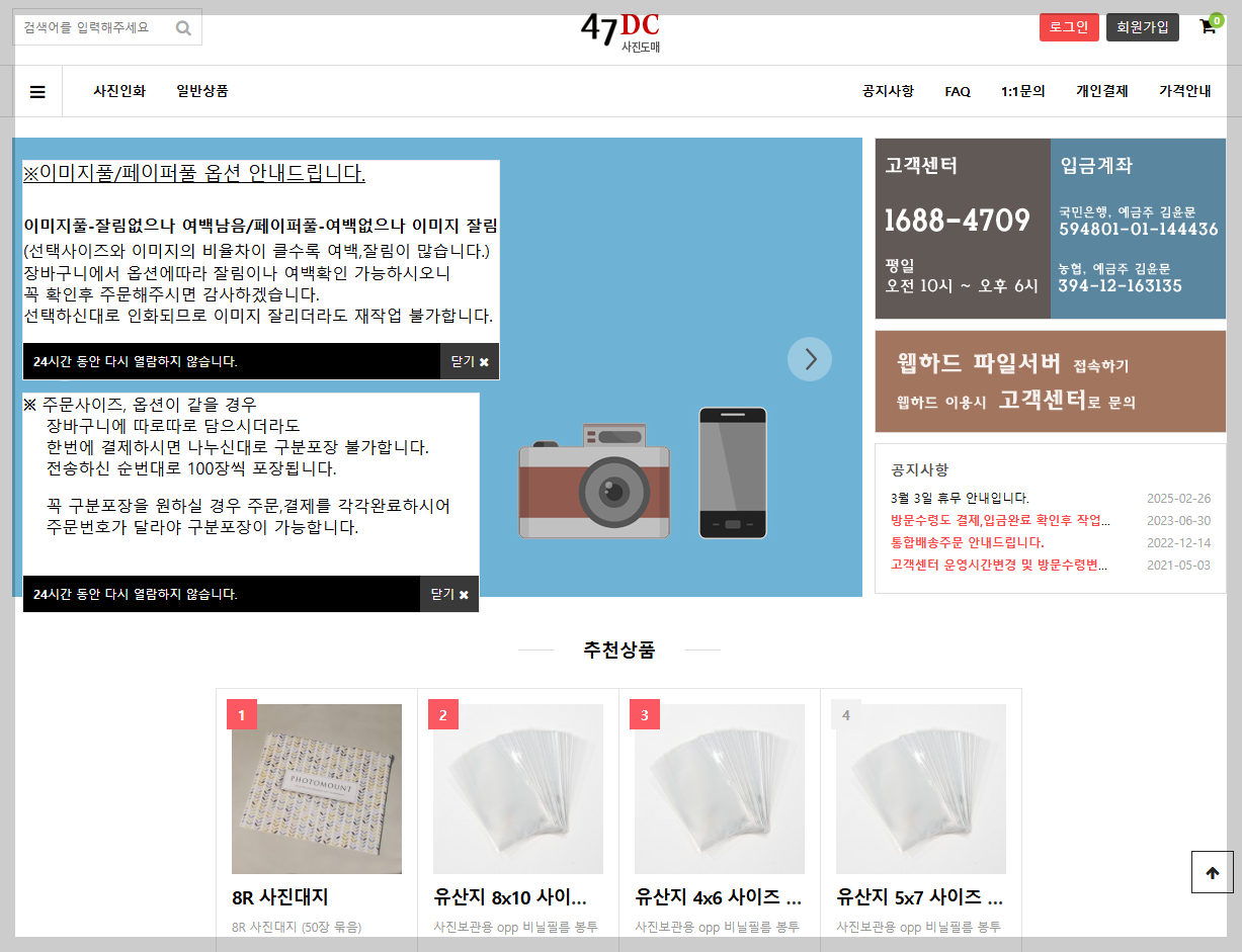 47DC는 일반 소비자보다는 대량 인화가 필요한 분들께 적합한 도매형 사진인화 사이트예요.