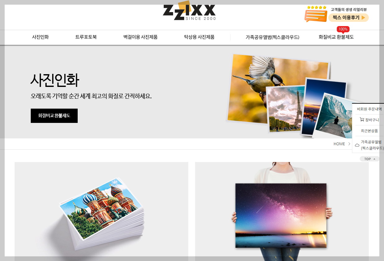 찍스(zzixx)는 대한민국 최초의 사진 인화 사이트로, 지금도 국내 최대 규모를 자랑해요.