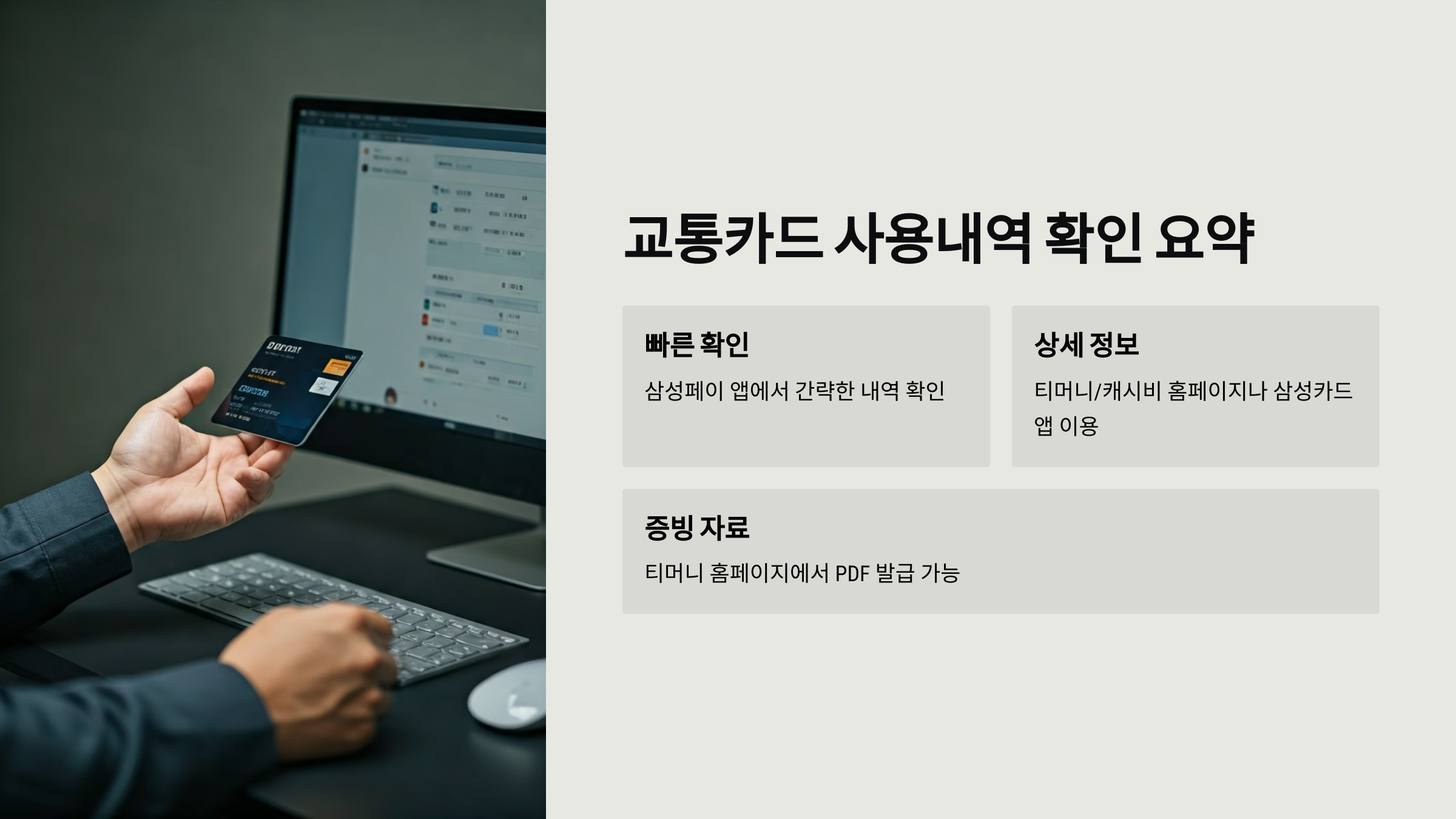 만약 삼성카드를 통해 후불교통카드 기능을 이용하고 있다면, 보다 자세한 정보 확인이 가능합니다.