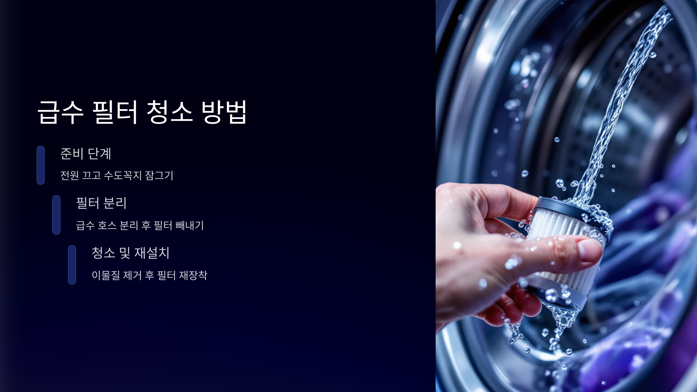 수도, 호스, 필터 점검만으로도 쉽게 해결 가능하니 너무 걱정하지 마세요.