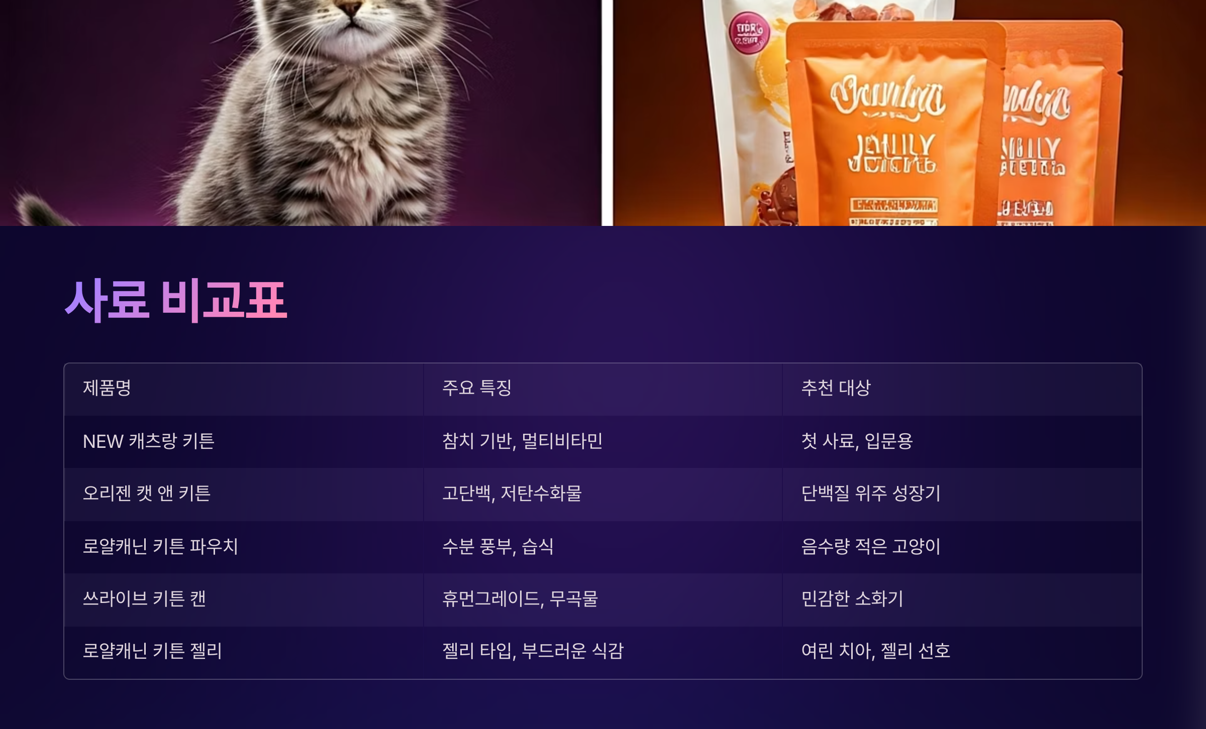 이 글에서는 국내에서 이미 인기 많고 검증된 새끼고양이 전용 사료 추천 리스트와 함께