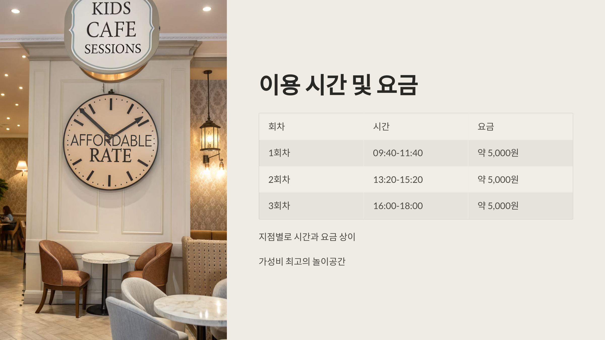 지점별로 다르지만 대부분 아동 1인 기준 5,000원 수준이에요. 가성비 최고!