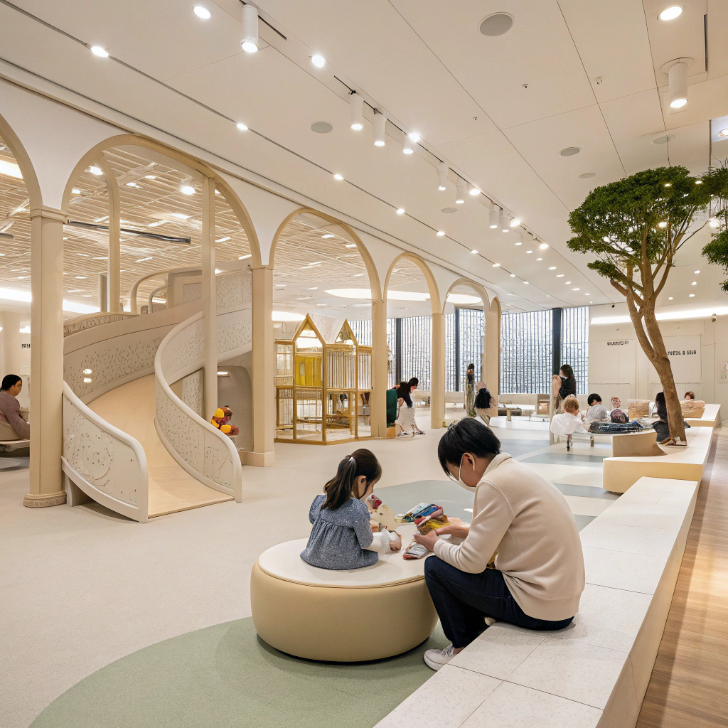 특히 0~6세 미취학 아동을 대상으로 한 공간으로, 실내에서 마음껏 뛰어놀 수 있도록 다양한 놀이기구와 안전장비가 설치되어 있어요.