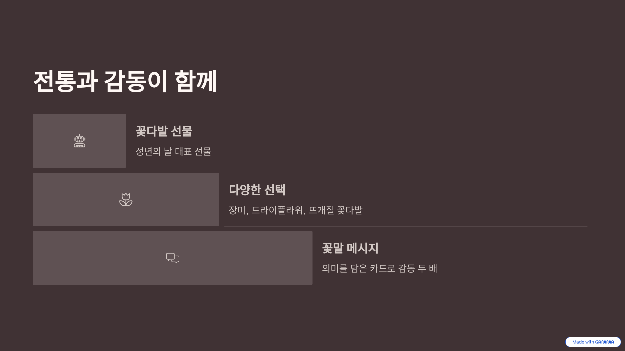 진심 어린 메시지와 함께 손에 들려주는 꽃다발, 그날의 감동은 오랫동안 기억될 거예요.