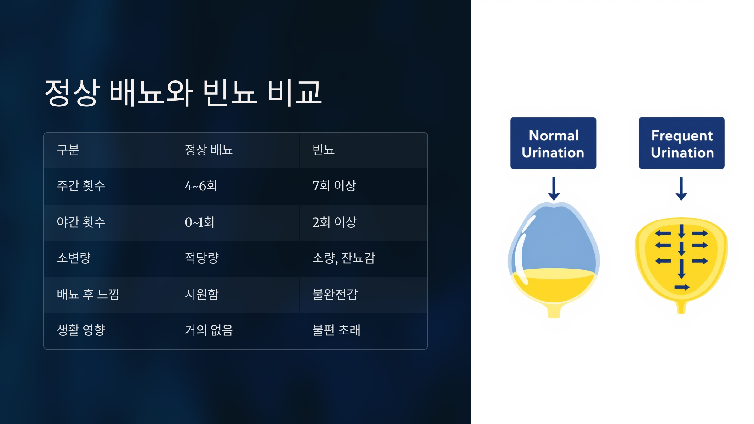| 구분 | 정상 배뇨 | 빈뇨 |