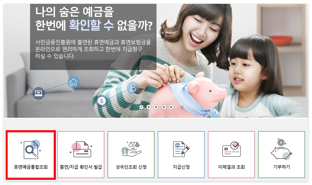 1. 위 링크 접속후 휴면예금 통합조회를 클릭합니다.