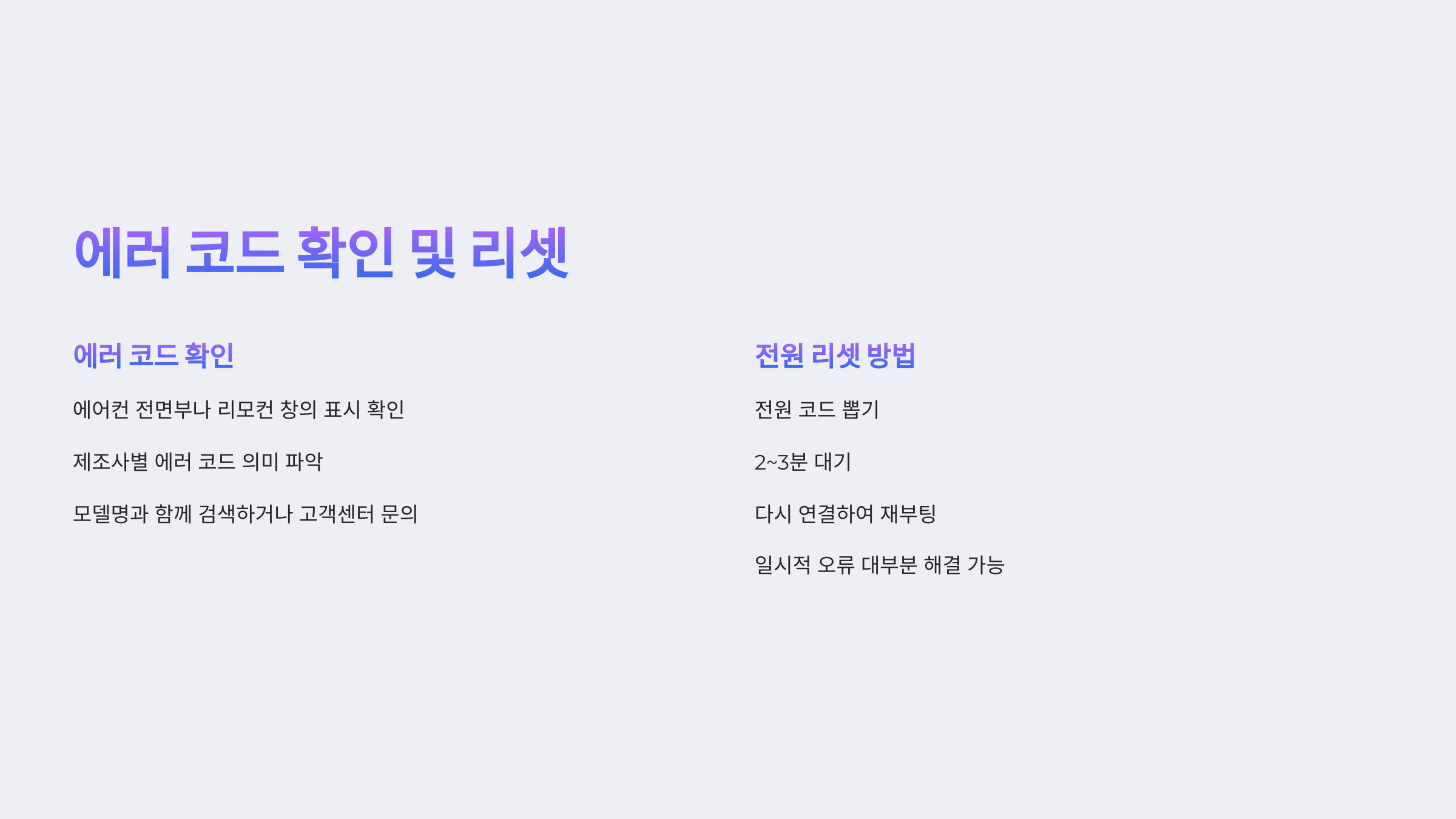 에어컨 전면부 또는 리모컨 창에 에러 코드나 깜빡이는 표시가 나타난 적 있나요?