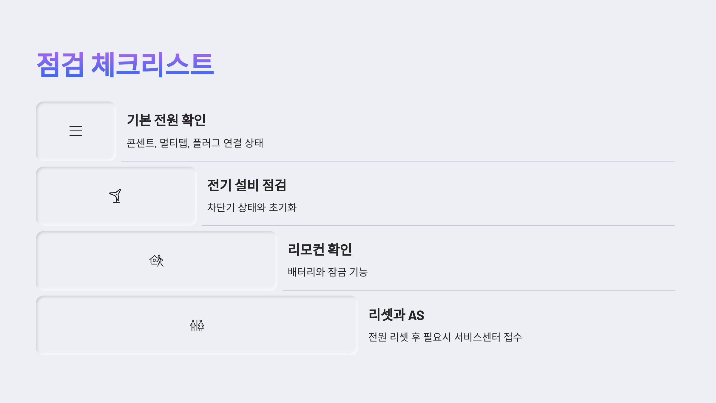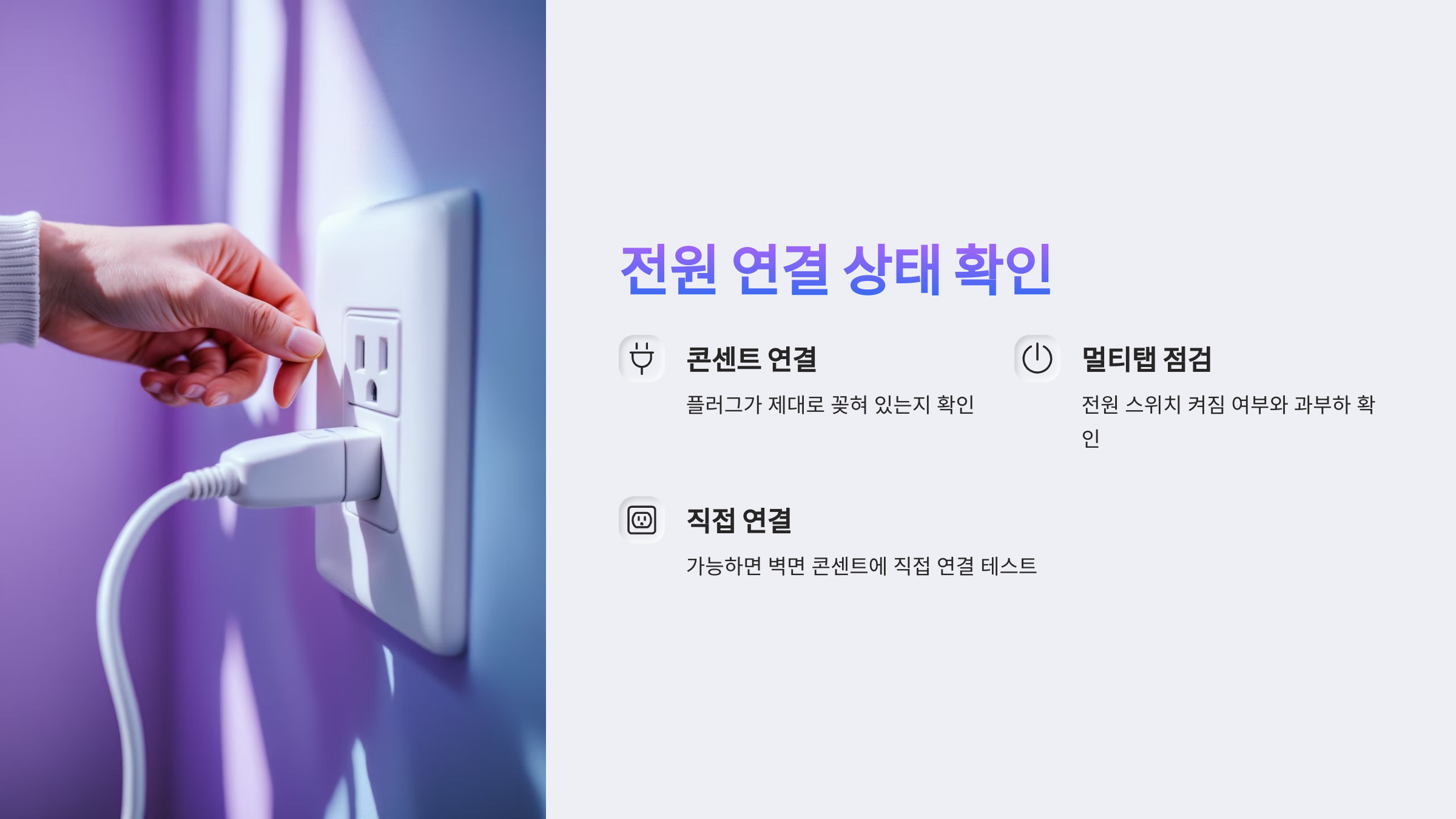 🔖 체크포인트 1: 콘센트와 플러그가 제대로 연결되어 있는지 확인